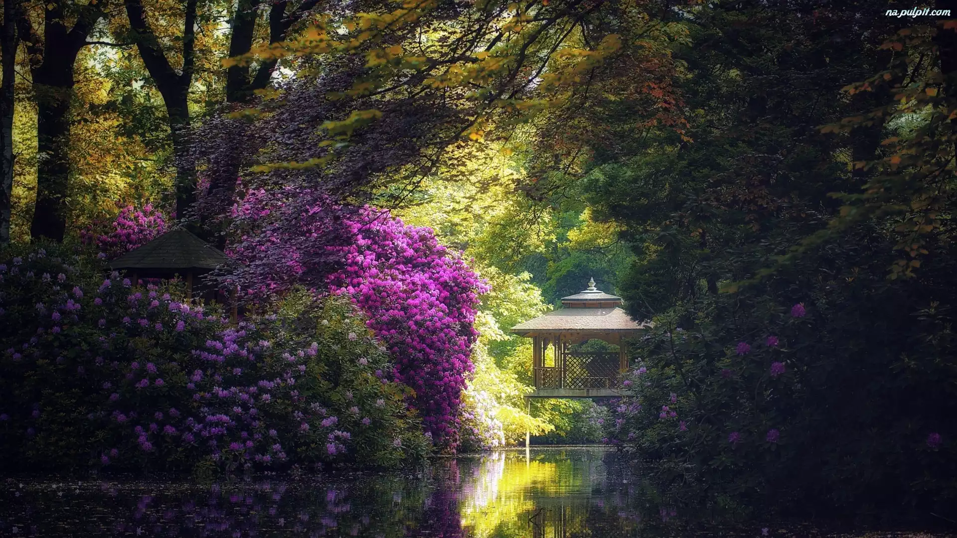 Azalia, Altany, Drzewa, Różanecznik, Staw, Krzewy, Park, Kwiaty Na Pulpit