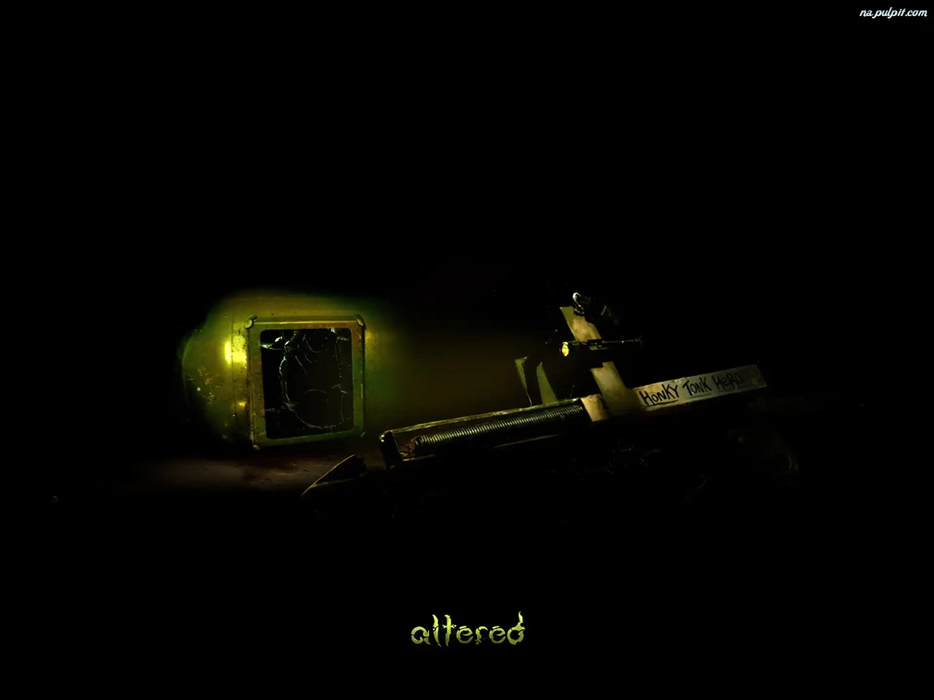 szyb, Altered, wejście ciemno, latarka, Altered, postacie latarka, mężczyźni, Altered, pistolet koszula, okienko, Altered, zielona