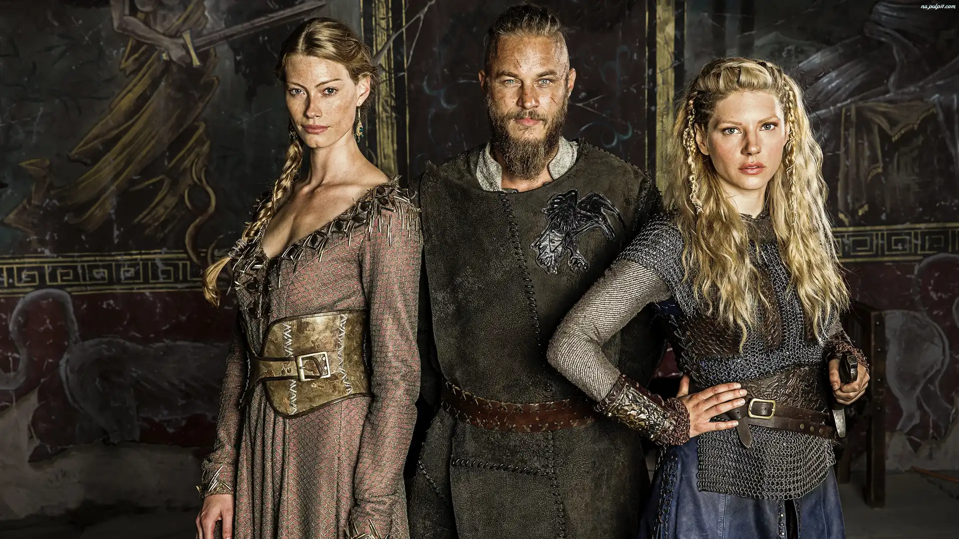 Ragnar Lothbrok, Vikings, Wikingowie, Alyssa Sutherland, Katheryn Winnick, Lagertha Lothbrok, Aslaug, Serial, Travis Fimmel Na Pulpit |