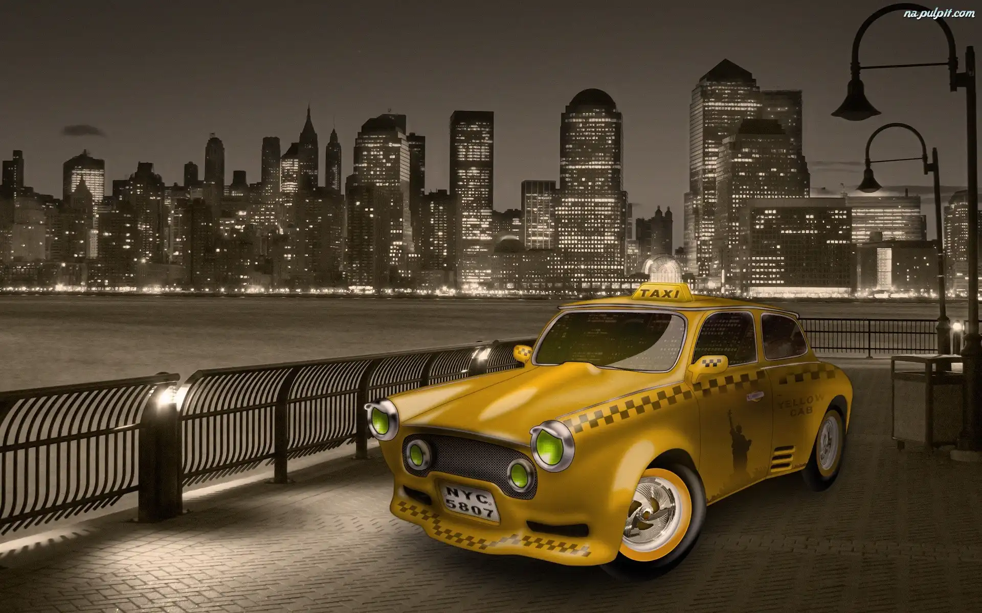 Grafika, Amerykańska, Taksówka Na Pulpit