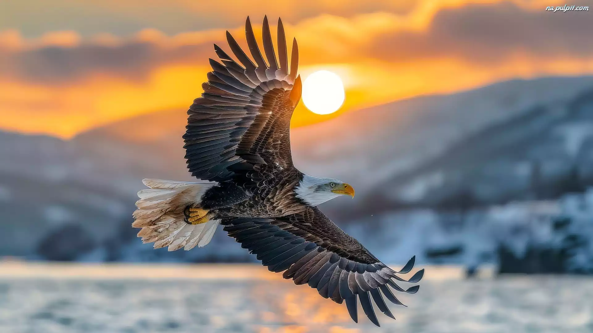 Skrzydła, Ptak, Bielik amerykański, Słońce, Rozpostarte Na Pulpit