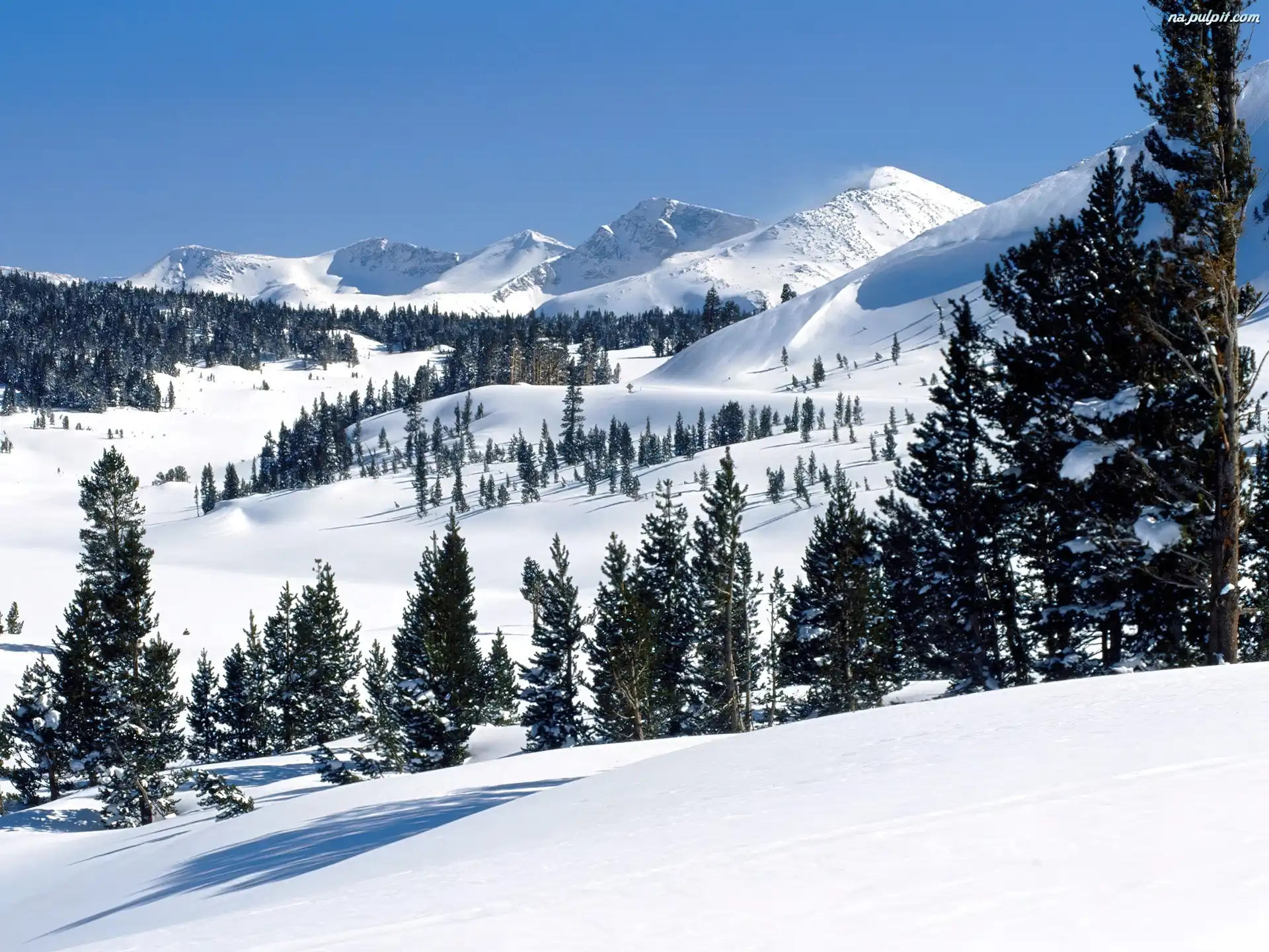 Kamienie, Góry, Jezioro Oszronione, Drzewa Zima, Drzewo Jezioro, Góry, Chmurki Plaża, Fale, Góry, Morze Góra Góra Zima, Rzeka Góra Góry, Krzewy palmy, Chmura, Góry, Niebo Góry, śnieg domki, Góry, dwa drzewa skały, Niebo