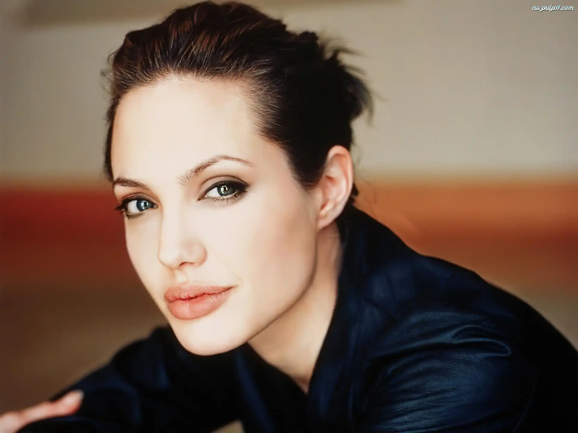 Angelina Jolie, czarna koszula Na Pulpit