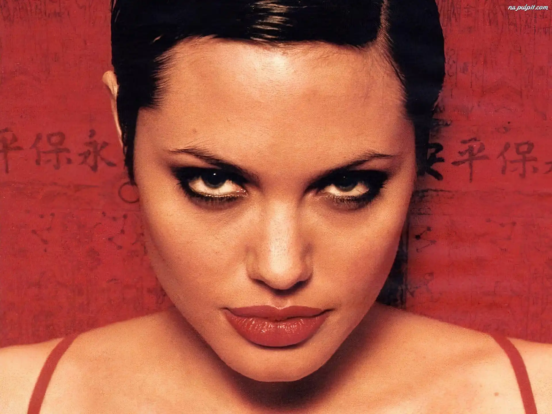 Angelina Jolie, czerwone usta Na Pulpit