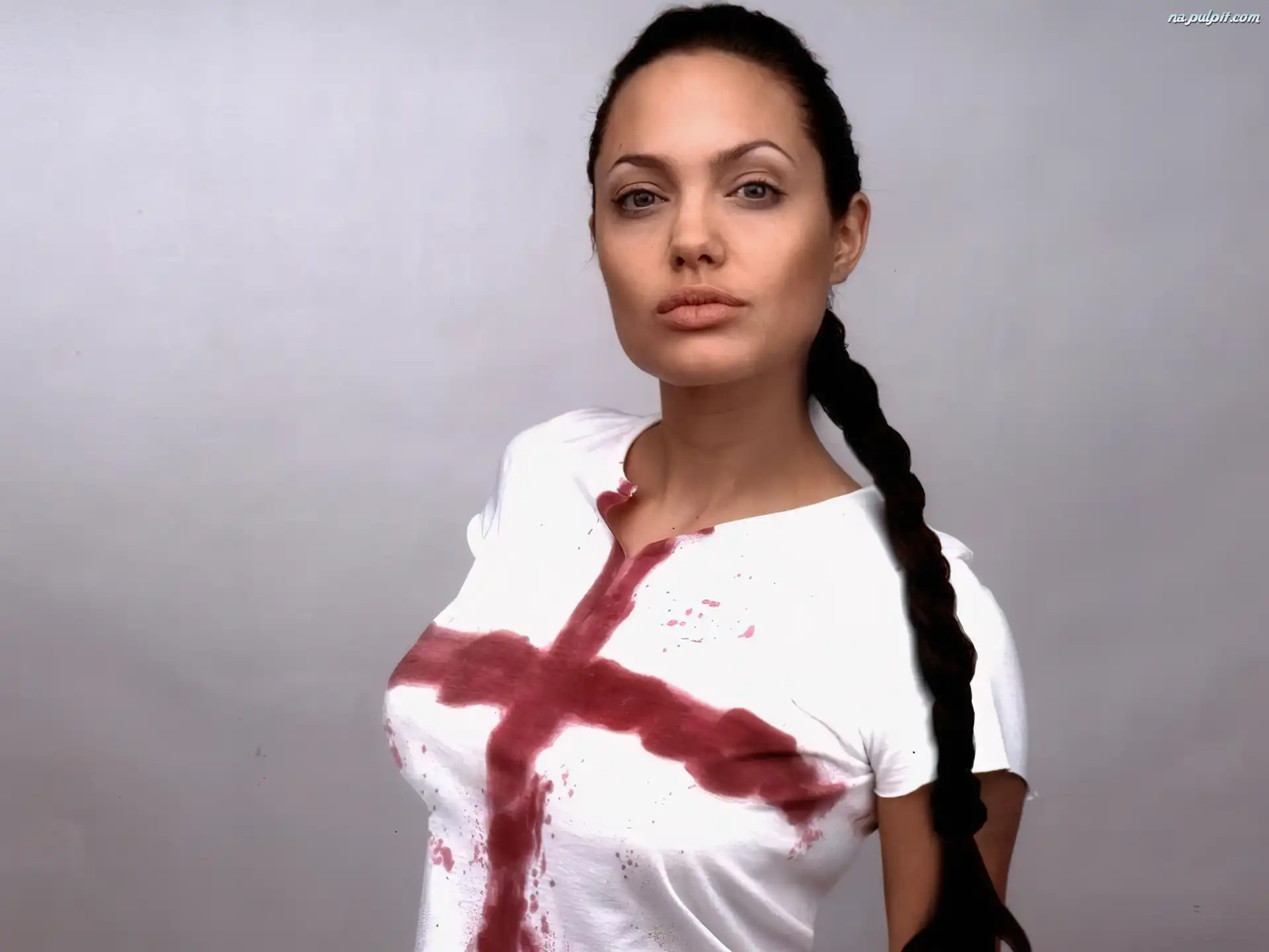 Angelina Jolie, długi warkocz Na Pulpit