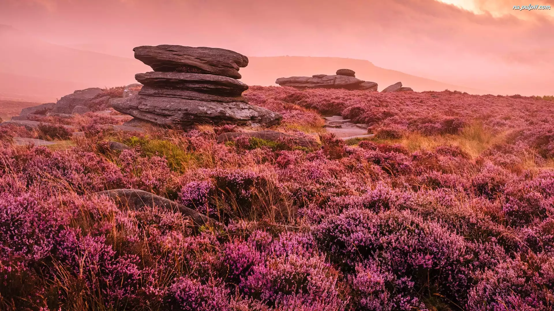 Skała, Wrzosowisko, Park Narodowy Peak District, Anglia, Hrabstwo Derbyshire, Hathersage, Wzgórze Na Pulpit |