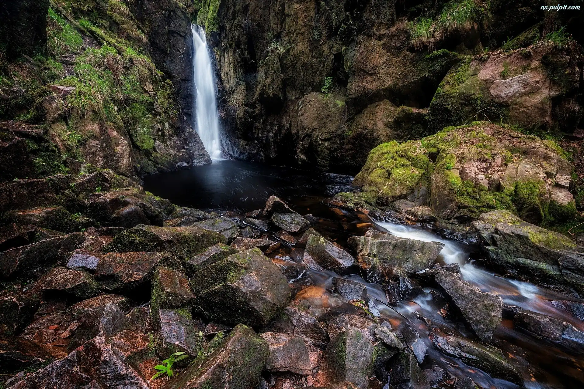Anglia, Kamienie, Hrabstwo Kumbria, Wąwóz Stanley Ghyll, Skały, Wodospad Stanley Force, Miejscowość Eskdale Na Pulpit |