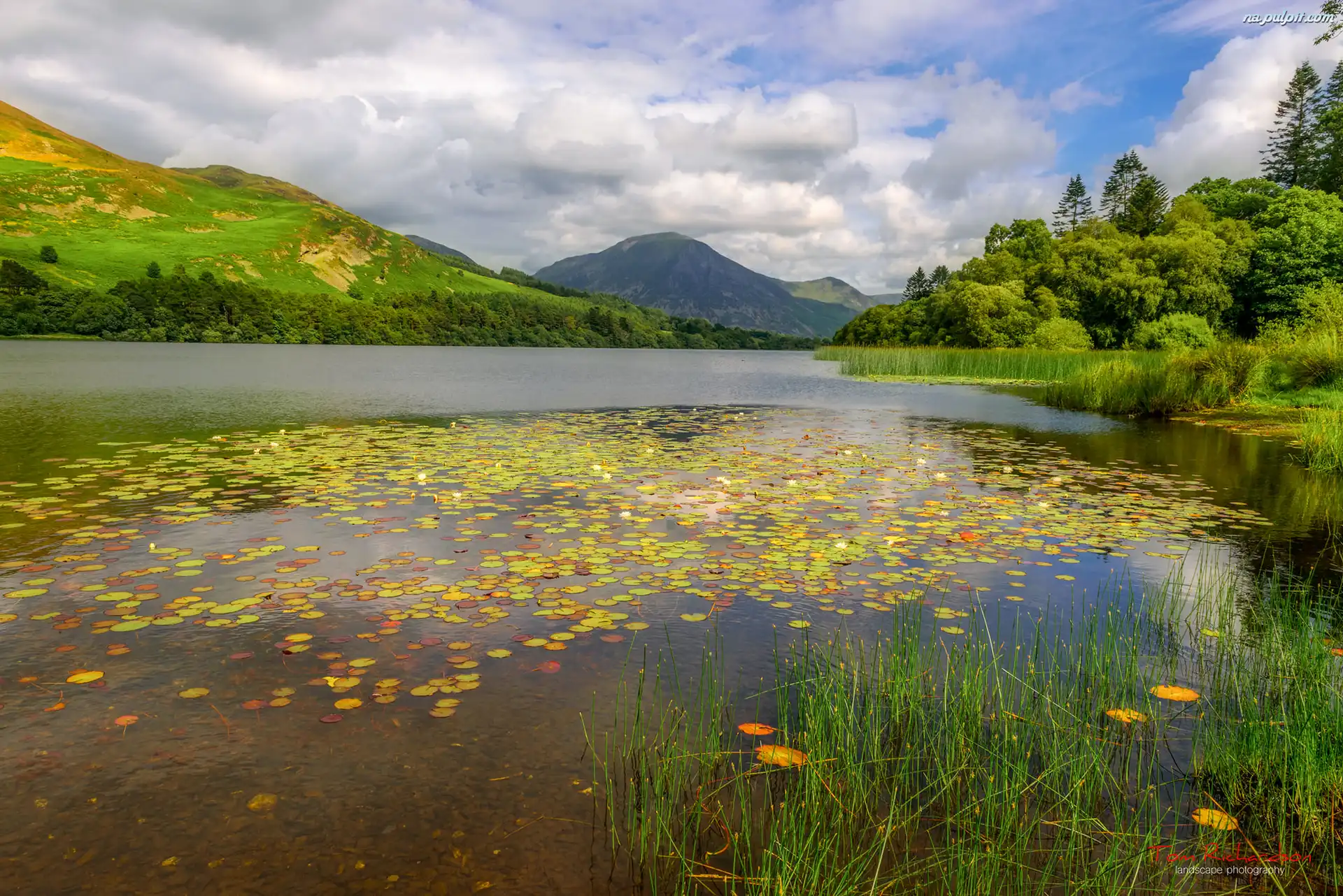 Anglia, Góry Fellbarrow, Drzewa, Lato, Jezioro, Loweswater Lake, Kumbria Na Pulpit