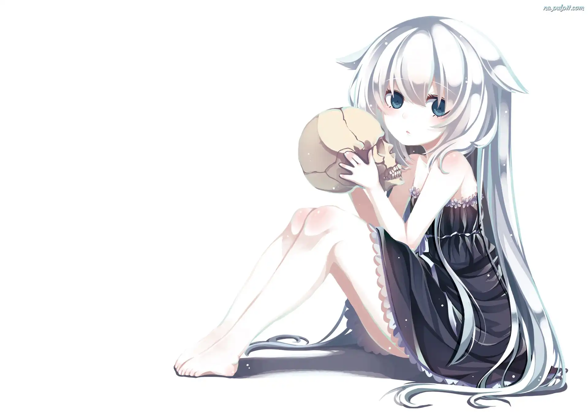 Anime, Białe, Czaszka, Dziewczyna, Włosy Na Pulpit