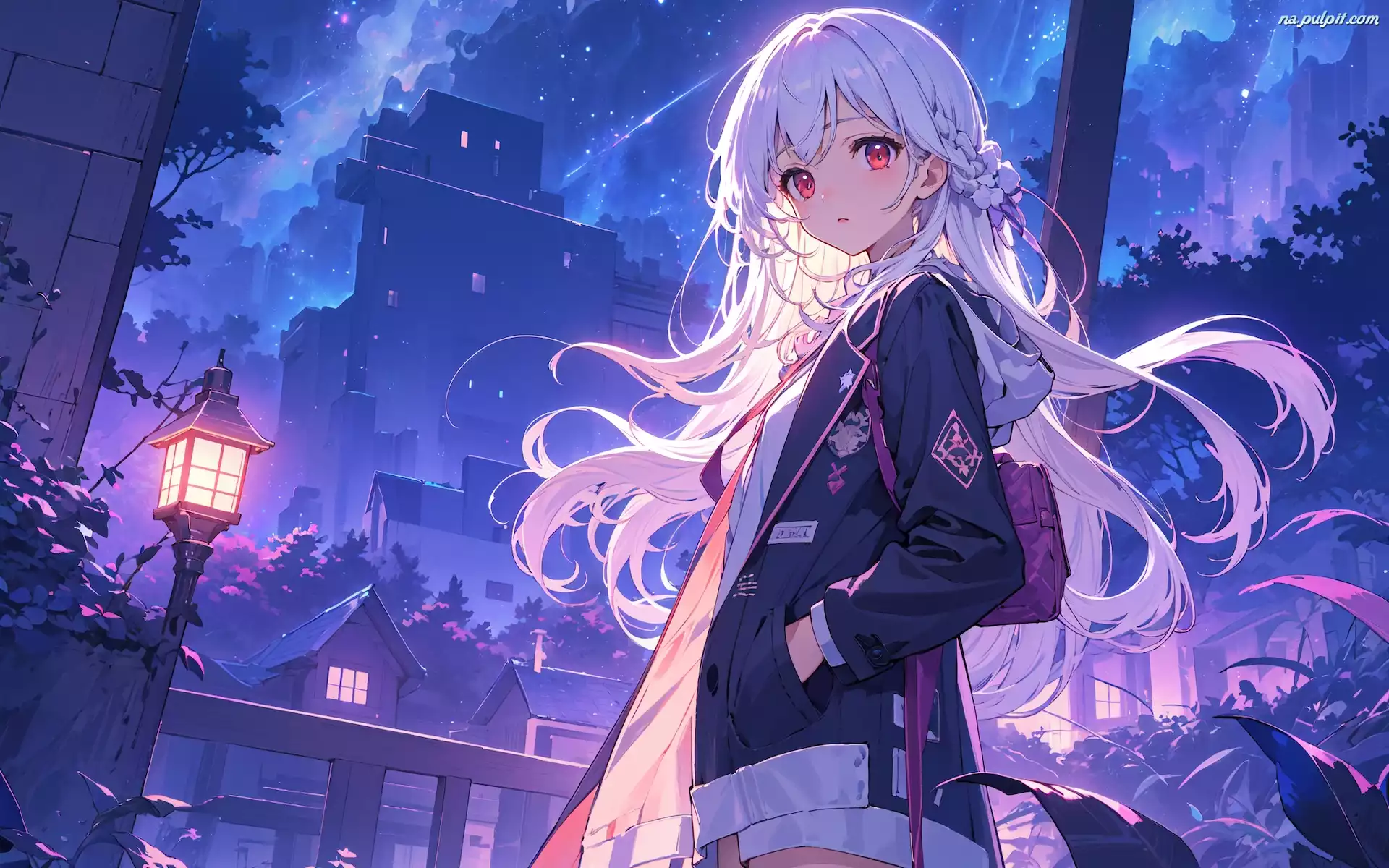 Ulica, Anime, Dziewczyna, Domy, Latarnia Na Pulpit