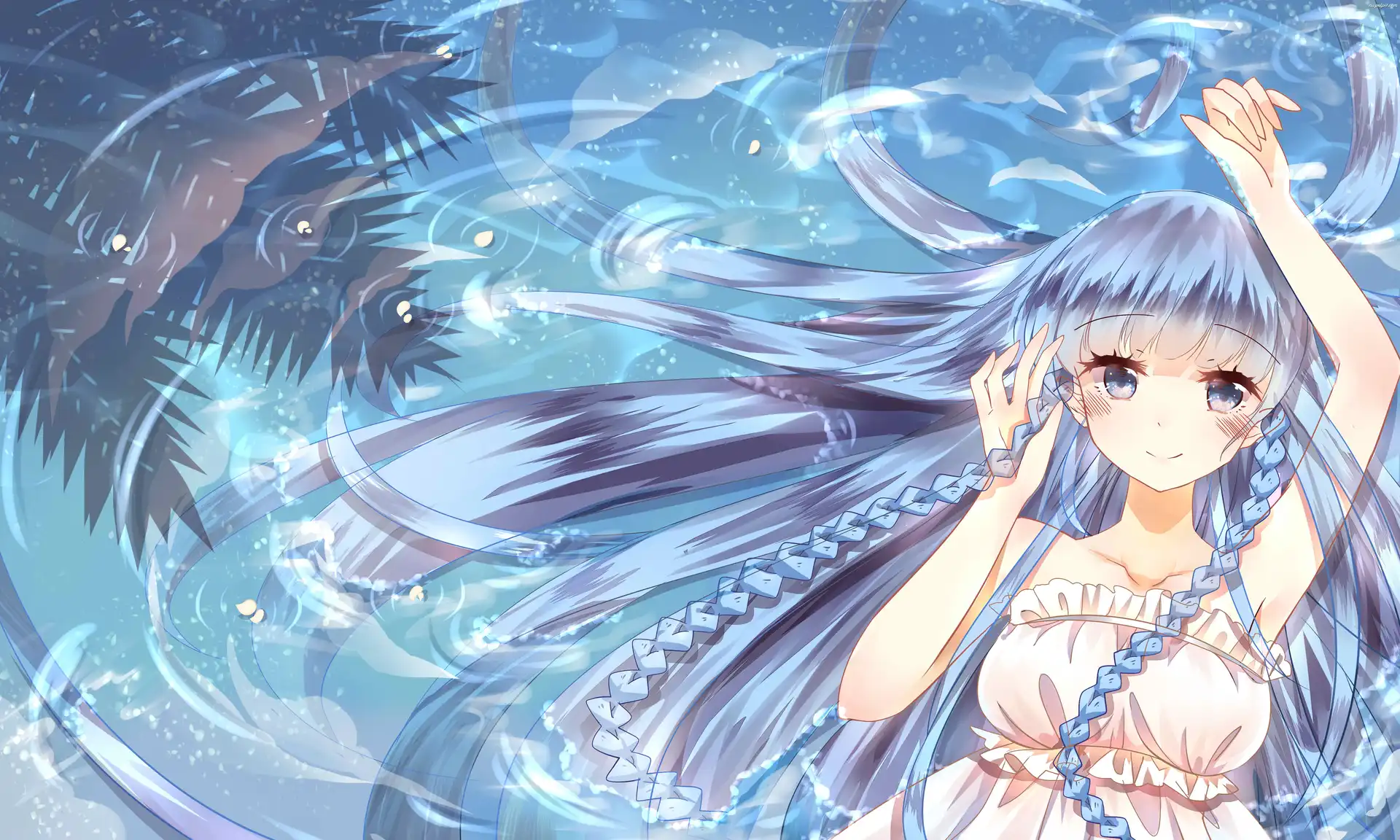 Anime, Włosy, Niebieskie, Dziewczyna, Woda Na Pulpit