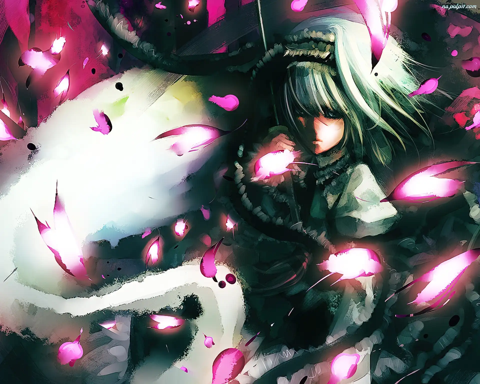 Anime, Płatki, Kobieta, Kwiatów Na Pulpit