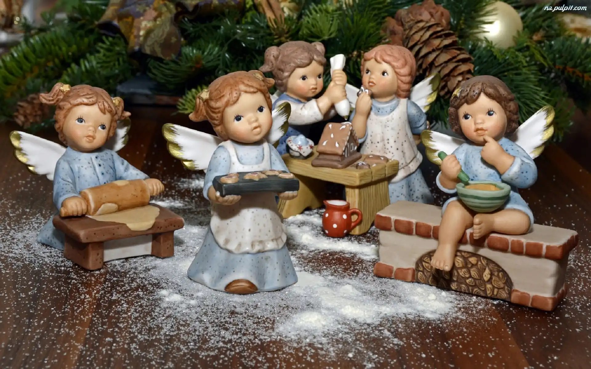 Aniołków, Kompozycja, Świąteczna, Figurki Na Pulpit