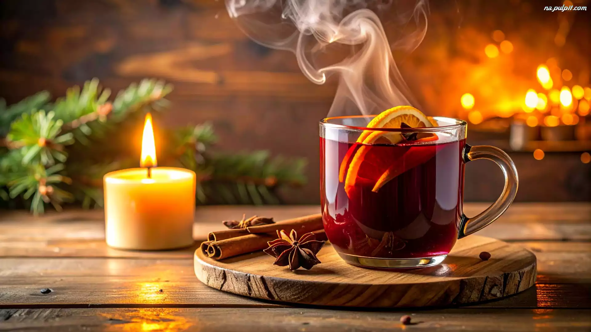Anyż, AI, Filiżanka, Plasterki, Pomarańczy, Herbata, Świeca, Cynamonu, Laski Na Pulpit