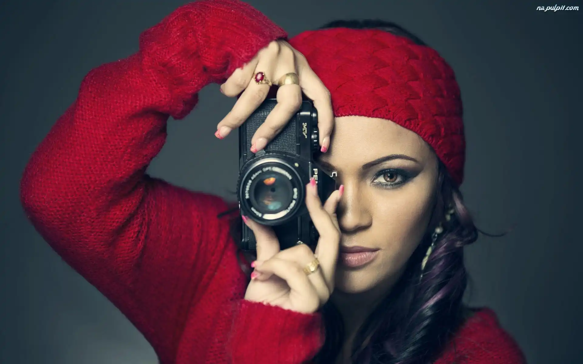 Aparat, Czapka, Dziewczyna, Makijaż Na Pulpit