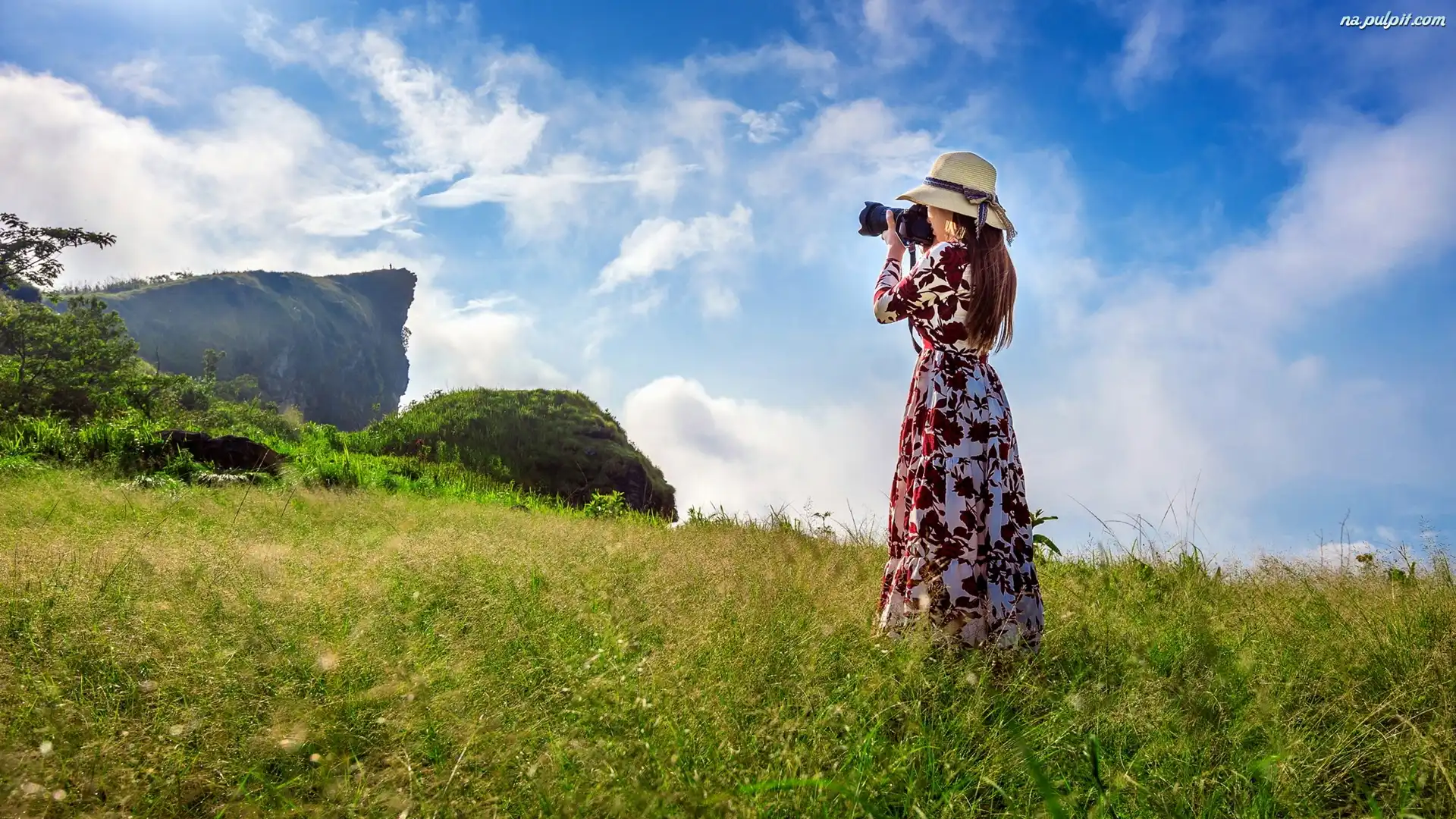 Phi Pan Nam Range, Sukienka, Aparat, Skały, Chiangrai, Tajlandia, Trawa, Kobieta, Góry