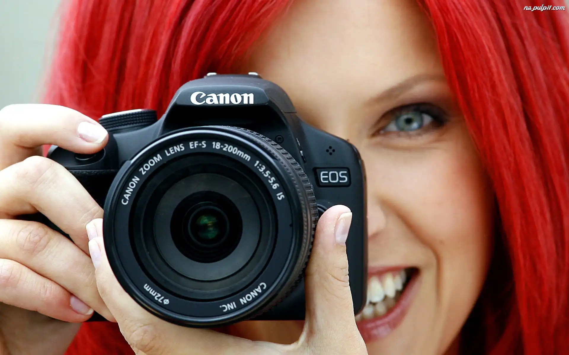 Aparat, Rudowłosa, Uśmiechnięta, Dziewczyna