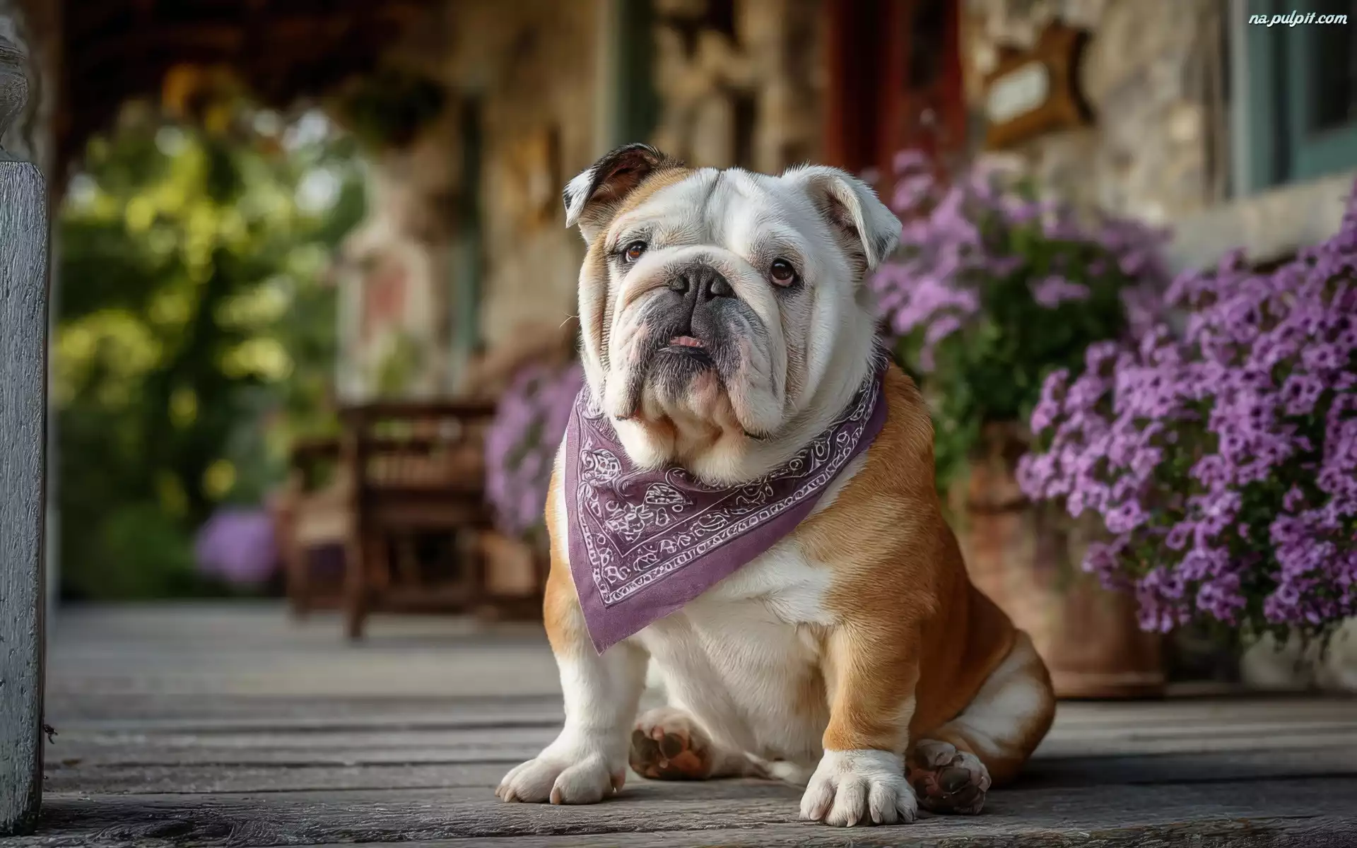 Pies, Buldog angielski, Apaszka, Grafika AI Na Pulpit