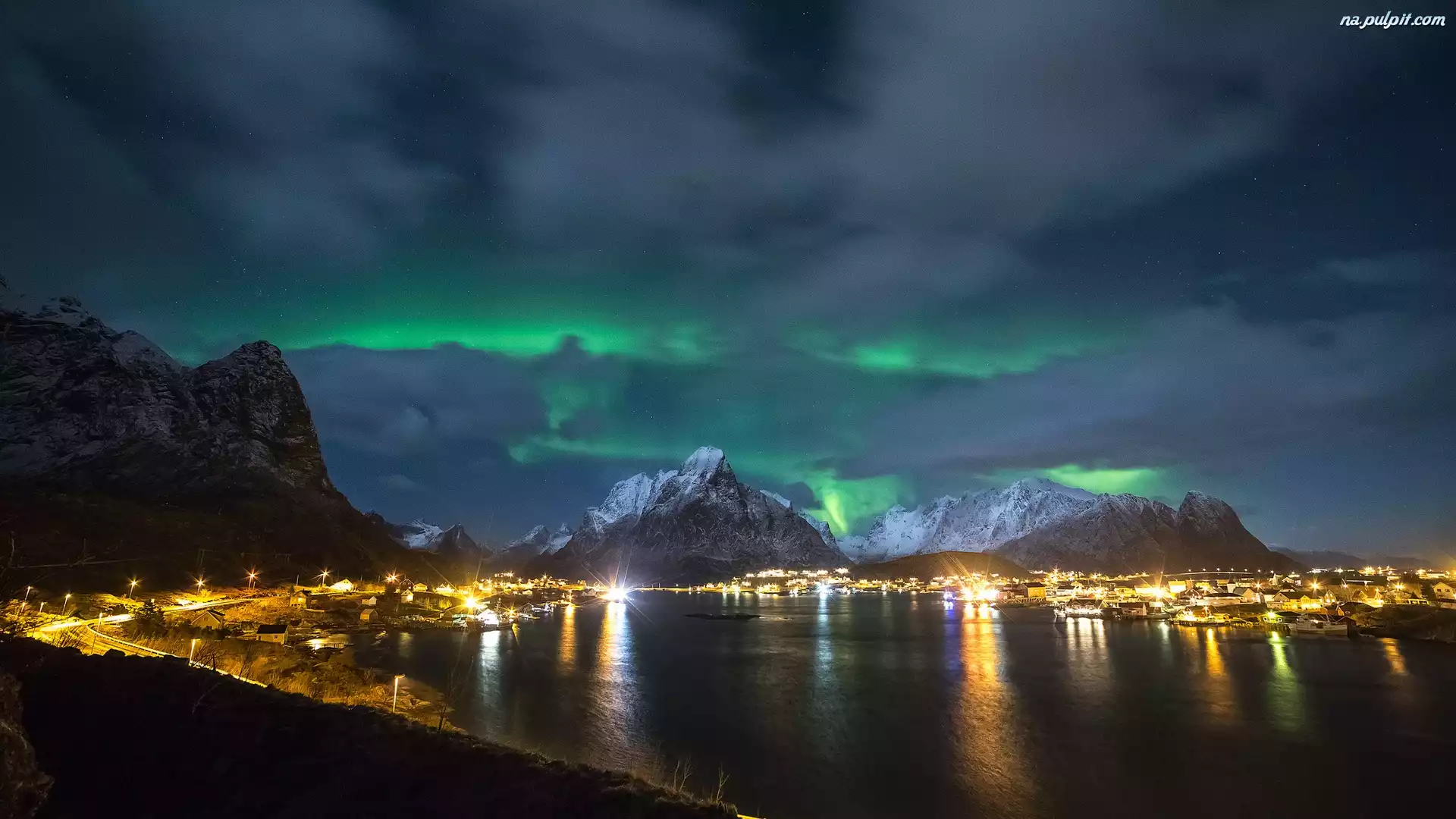 Norwegia, Archipelag, Noc, Miasto, Góry, Lofoty, Statki Na Pulpit