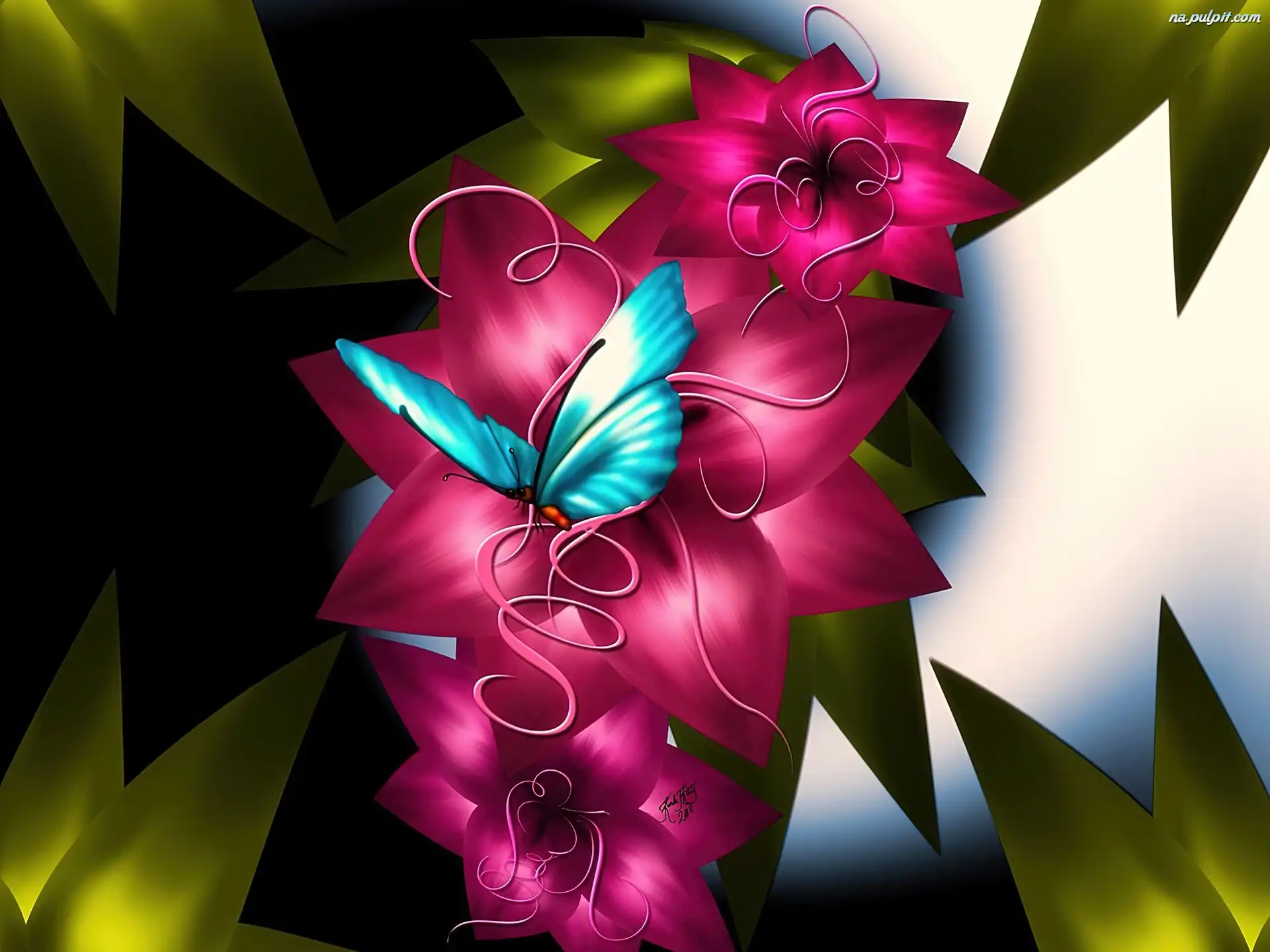 Art, Kwiat, Bordowy, Motyl Na Pulpit