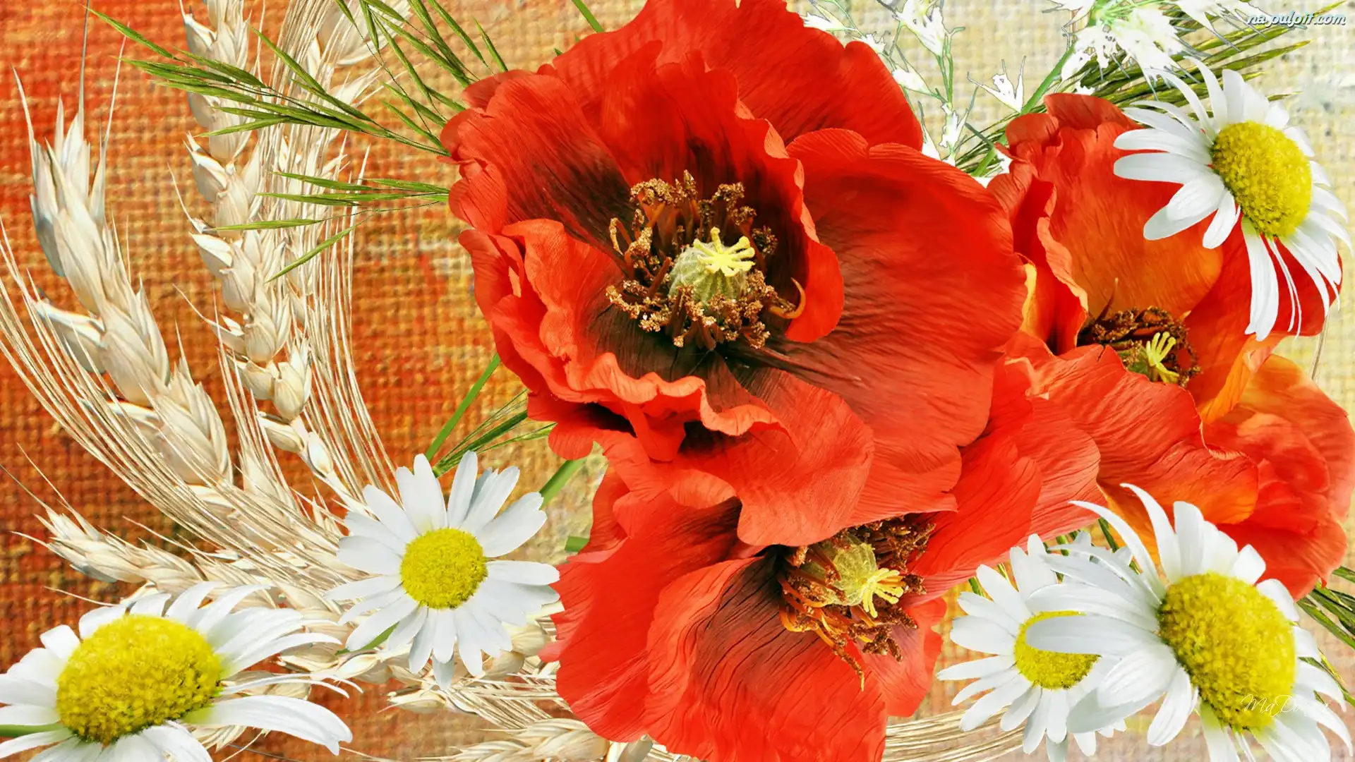 Art, Maki, Czerwone, Stokrotki Na Pulpit