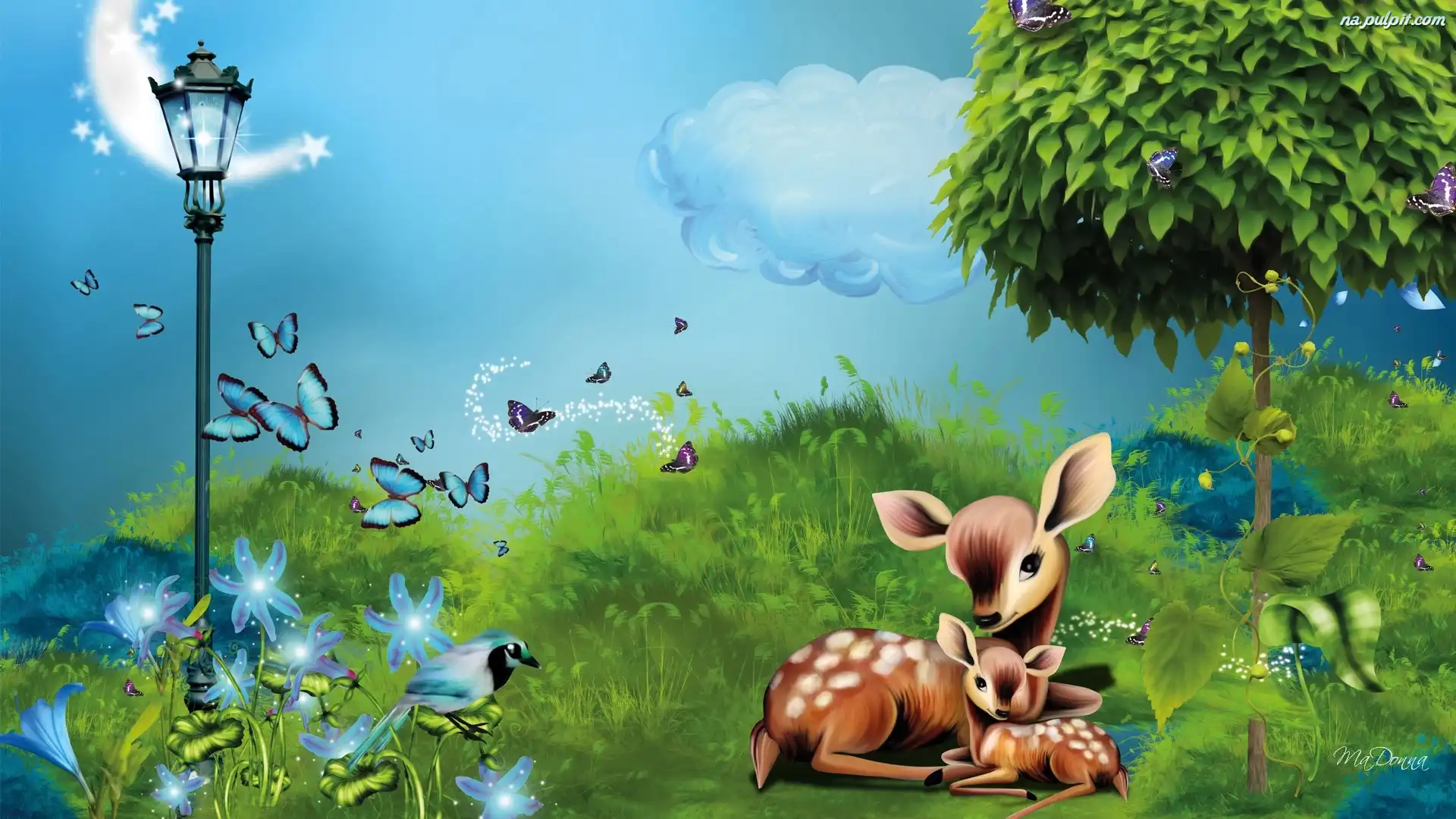 Art, Drzewo, Sarenki, Dwie, Trawa Na Pulpit