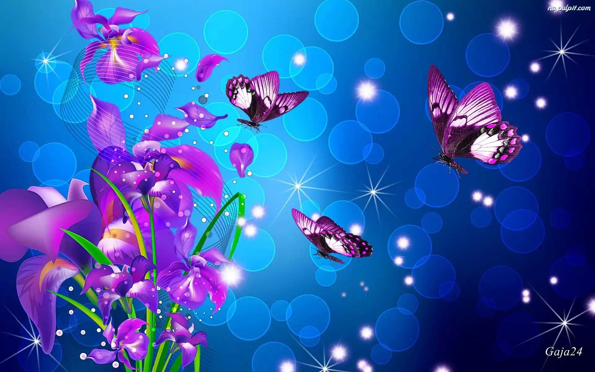 Art, Kwiaty, Fioletowe, Motyle Na Pulpit