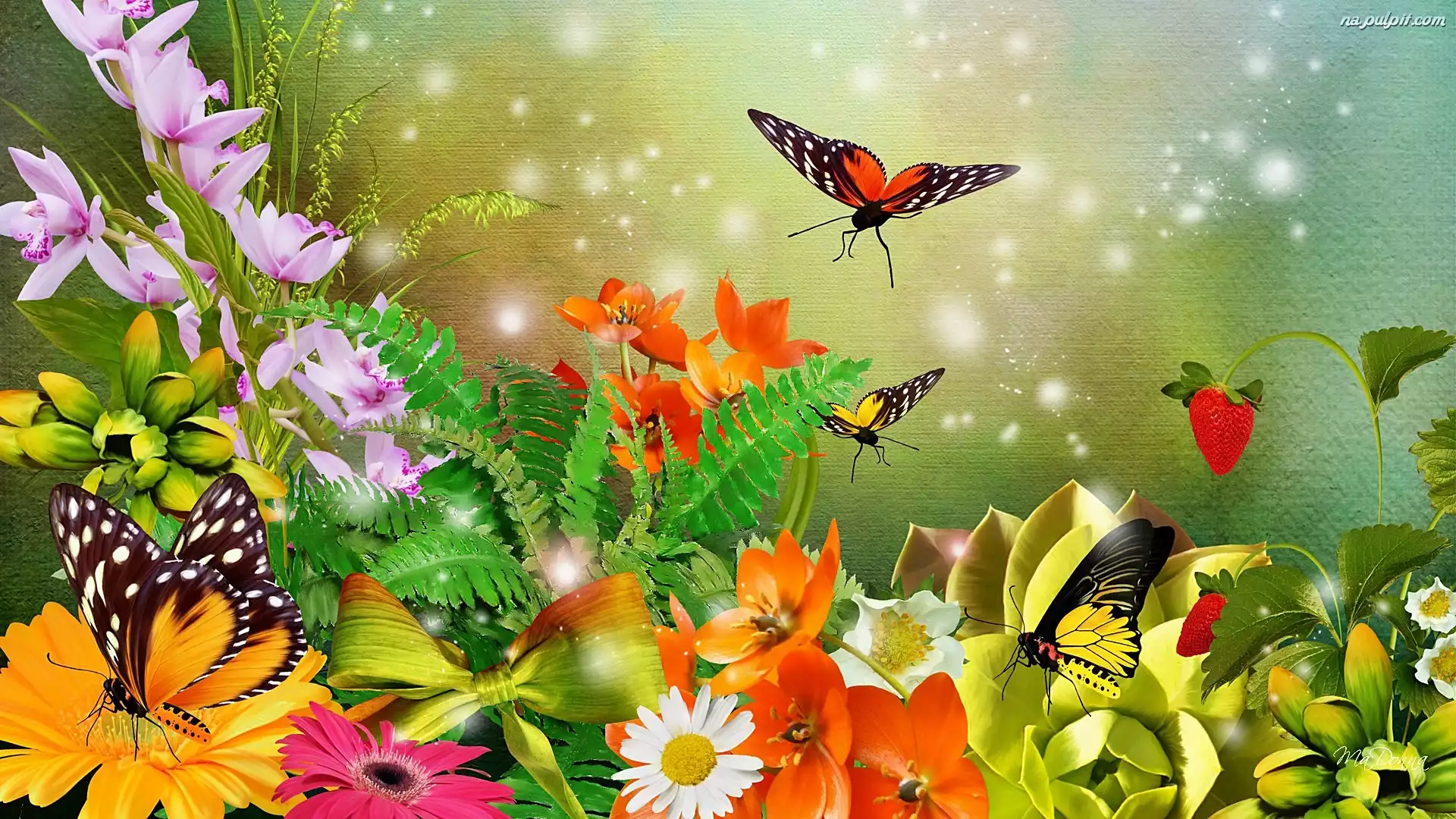 Art, Kwiaty, Kolorowe, Motyle Na Pulpit