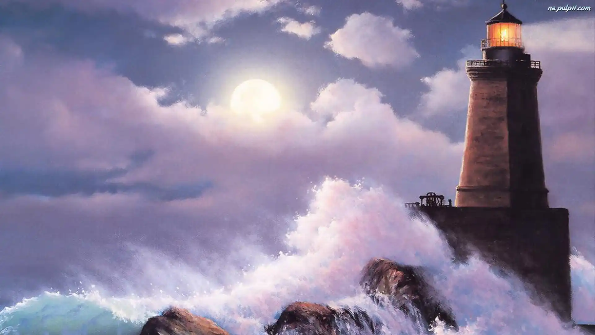 Art, Morze, Latarnia, Fale Na Pulpit