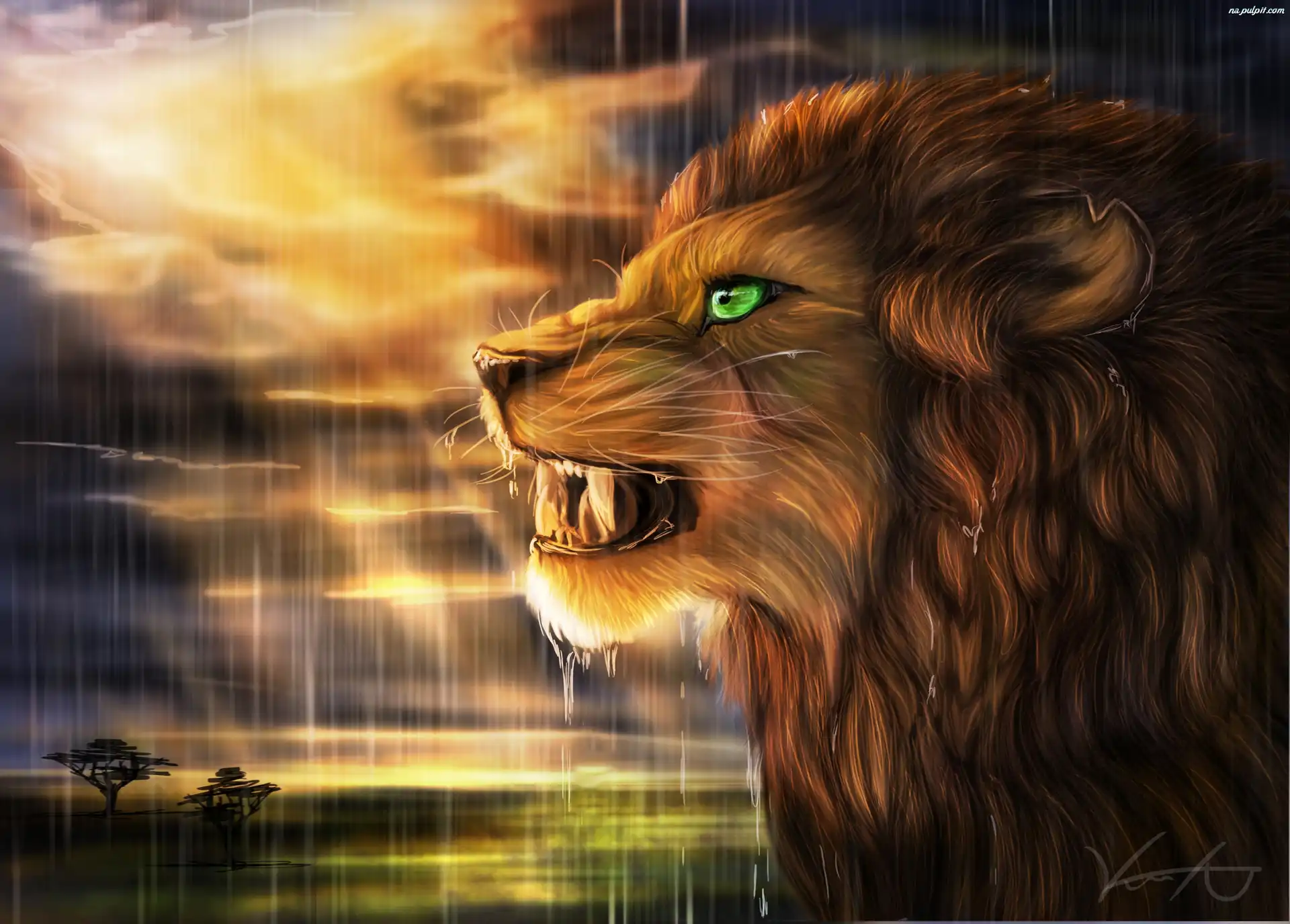 Art, Słońca, Zachód, Lew, Deszcz Na Pulpit