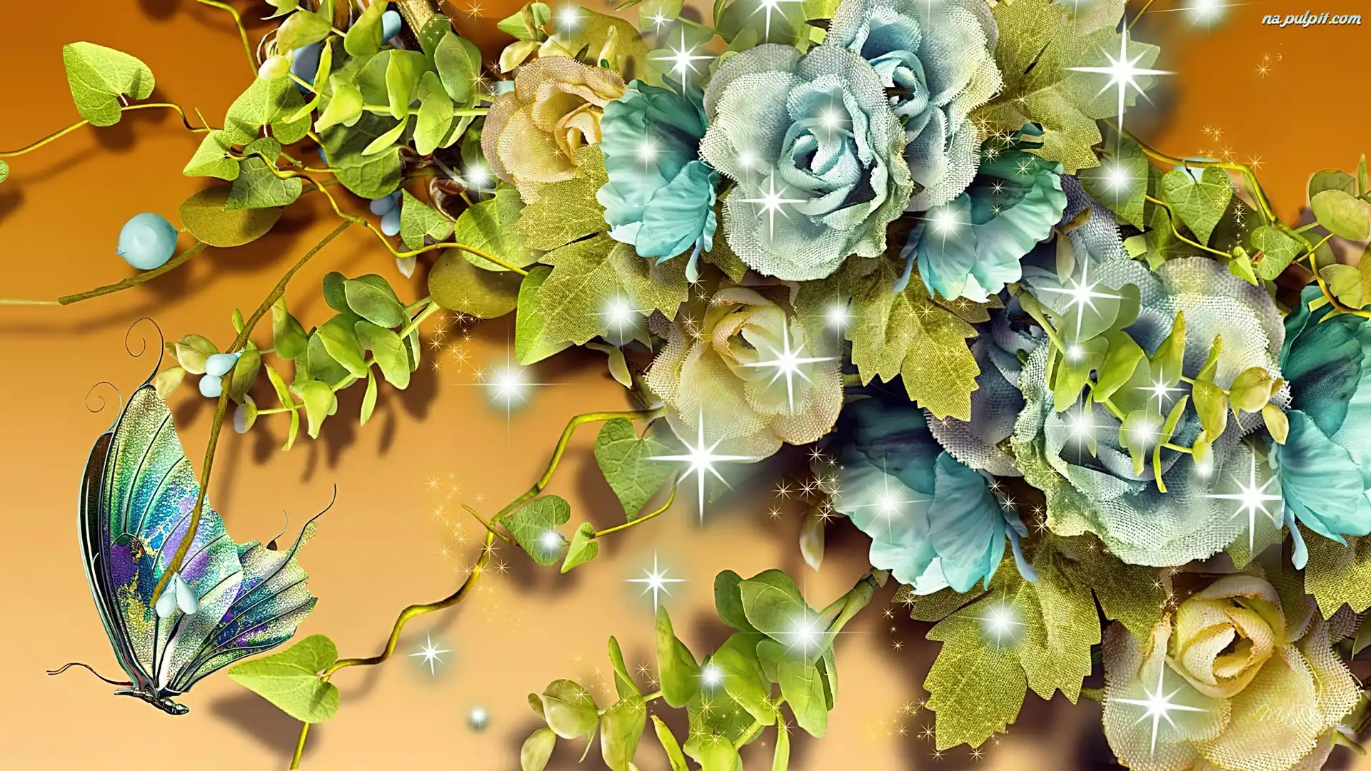 Art, Róże, Niebieskie, Motyl Na Pulpit