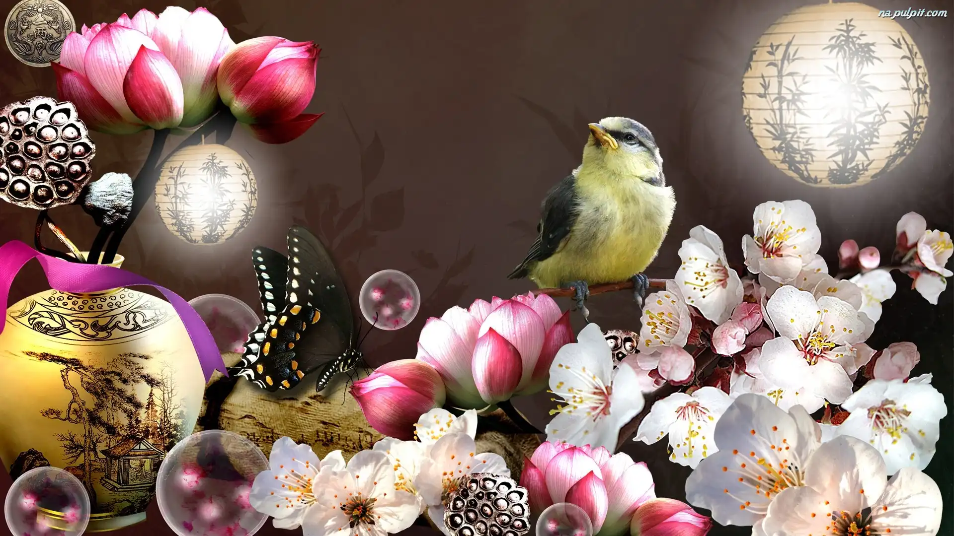 Art, Motyl, Ptaszek, Kwiaty Na Pulpit