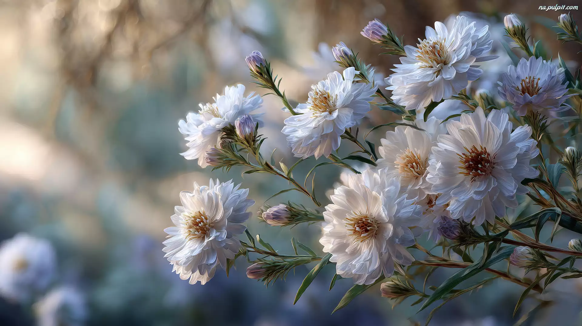 Białe, Astry, Kwiaty, Grafika AI Na Pulpit