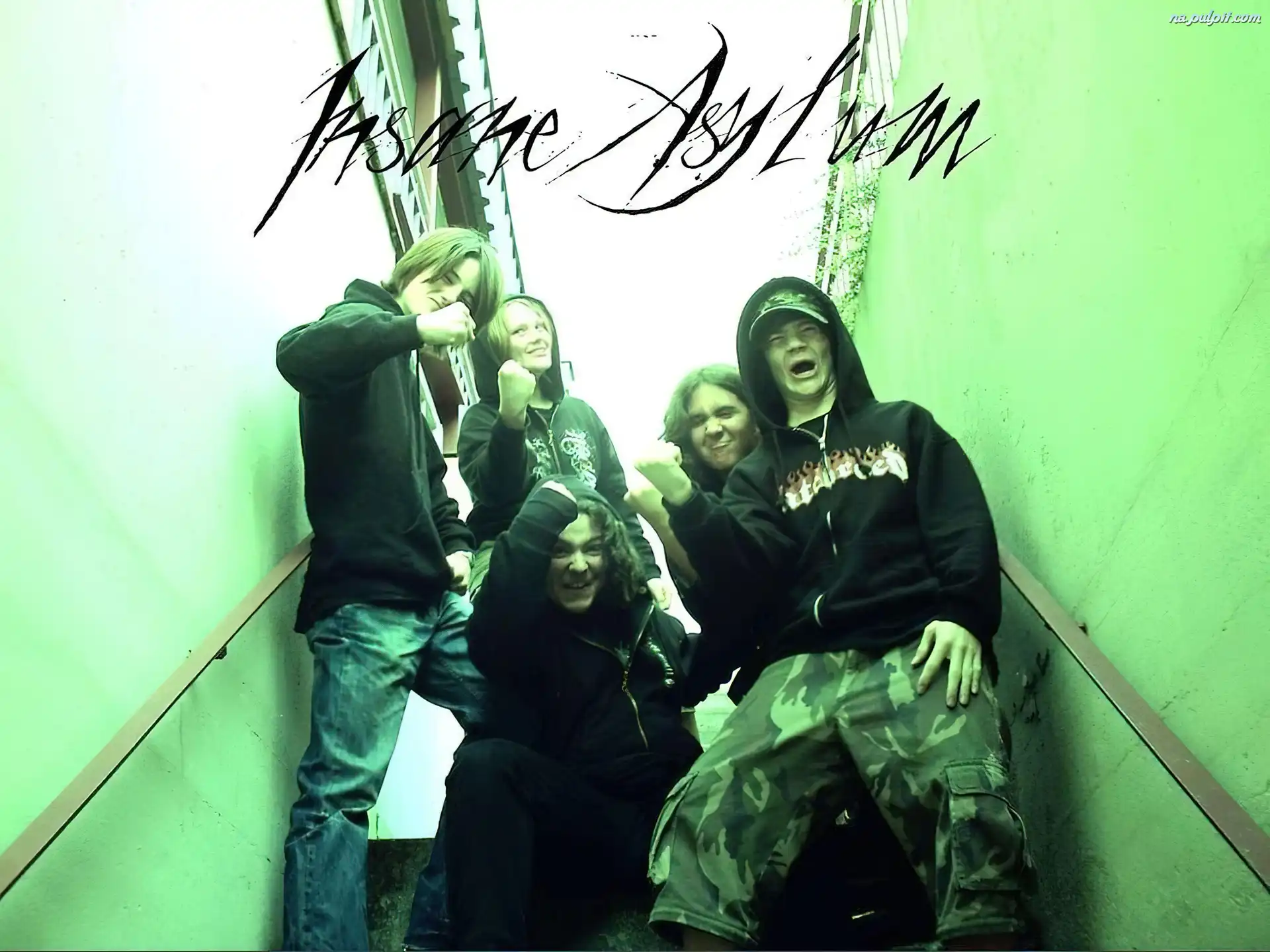 Insane Asylum, cały zespół Insane Asylum, żyletka uzi, Insane Asylum, pistolety książka, Insane Asylum, krzyż Insane Asylum, zespół twarze, zespół, Insane Asylum, ludzie czepeczka, spodnie moro, Insane Asylum, zespół cały