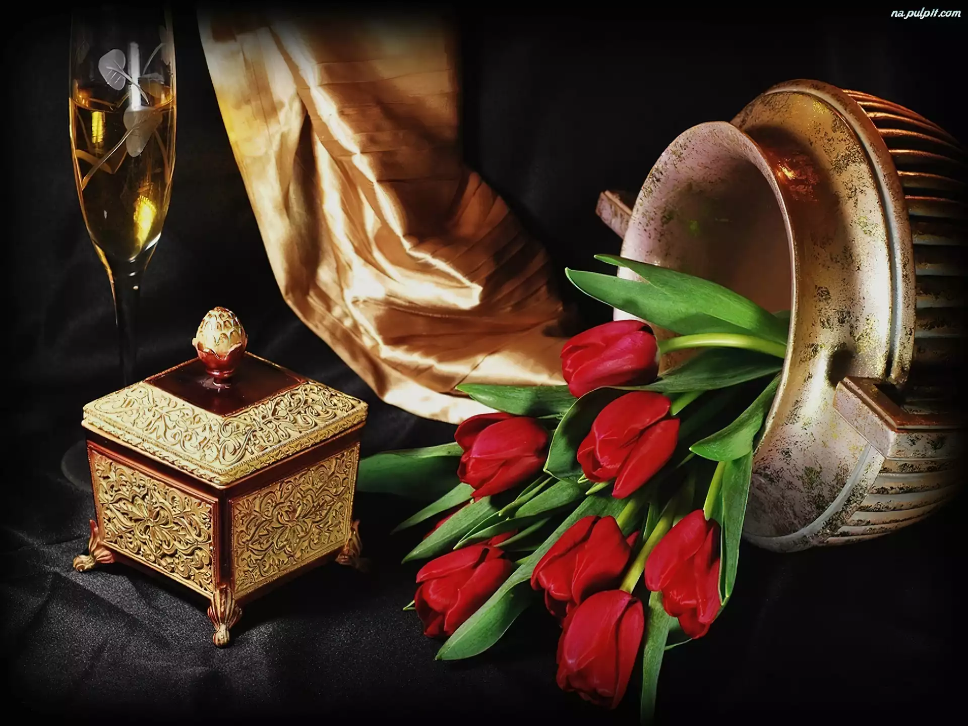 Atłas, Waza, Tulipany, Czerwone, Kuferek Na Pulpit
