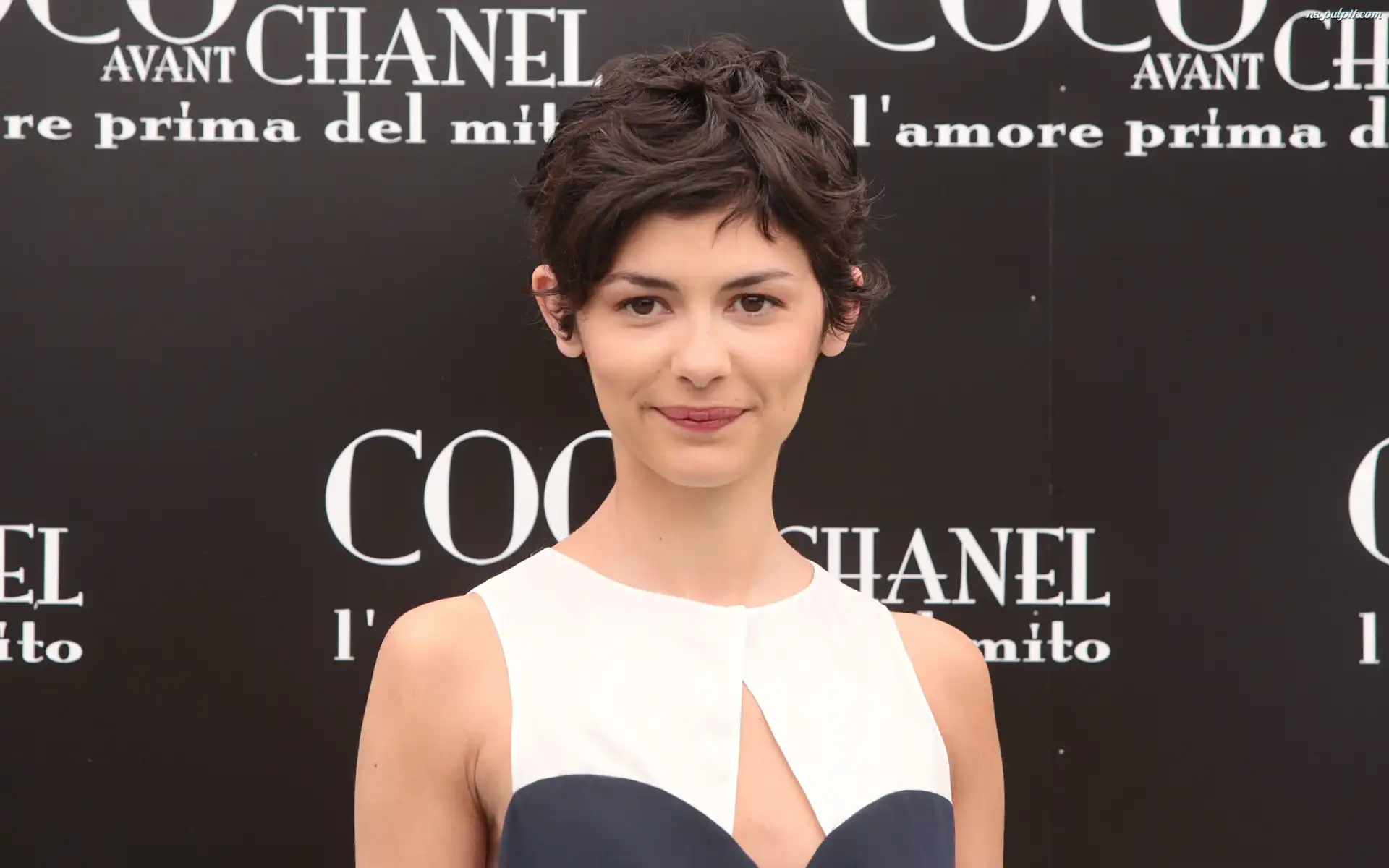 obraz, Audrey Tautou, czarny sweterek Audrey Tautou, twarz Audrey Tautou, fioletowa apaszka biały fotel, Audrey Tautou, czarna bluzka Audrey Tautou, czarna bluzka Audrey Tautou, fioletowa koszula Audrey Tautou, zamszowa kurtka Audrey Tautou Audrey Tautou, fotel Audrey Tautou, biały top jeansy, Audrey Tautou, czarna bluzka Audrey Tautou Audrey Tautou, profil niebieskie spodnie, Audrey Tautou, czarne buty