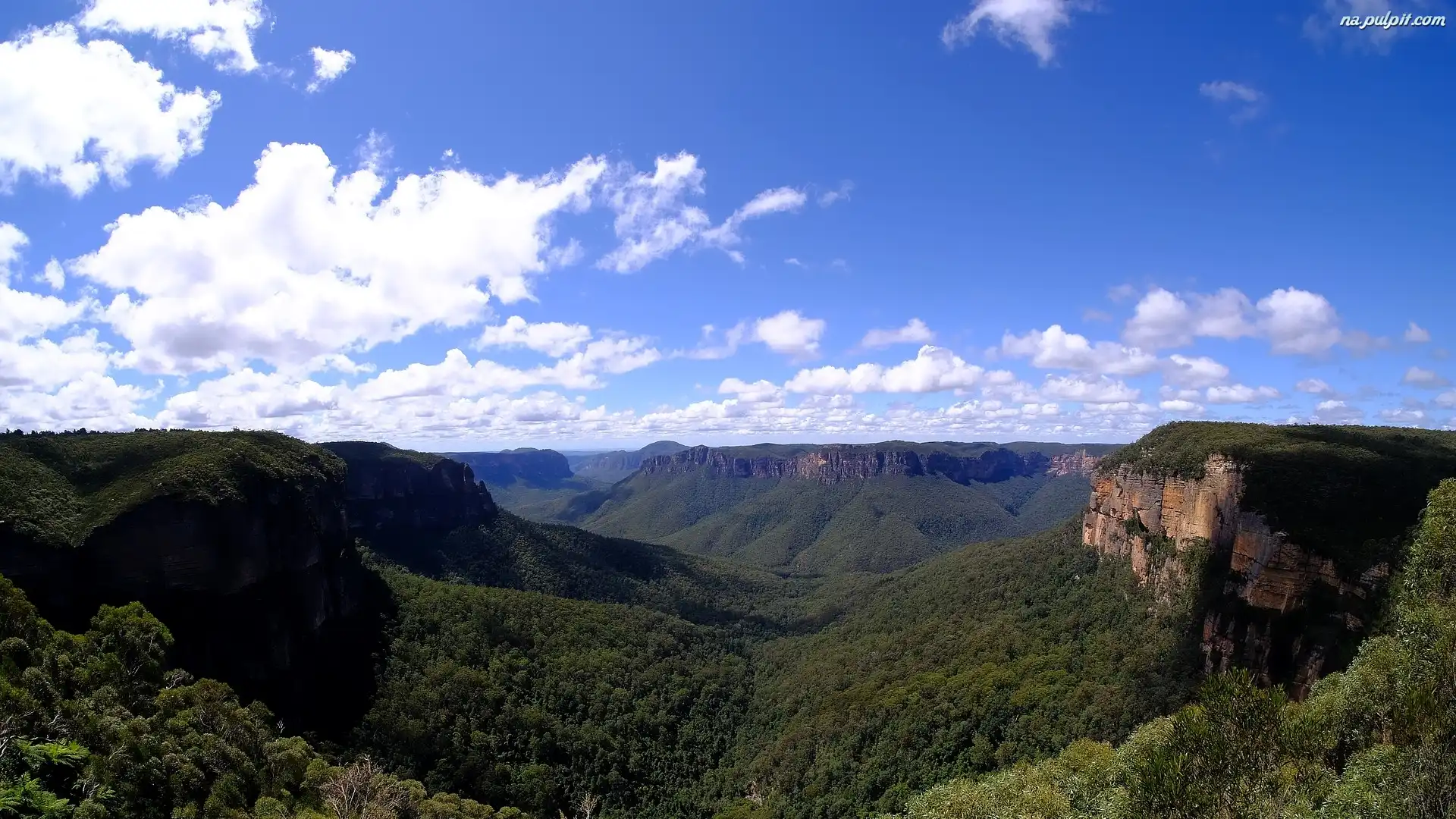 Australia, Roślinność, Nowa Południowa Walia, Chmury, Niebo, Góry Błękitne, Park Narodowy Gór Błękitnych Na Pulpit |