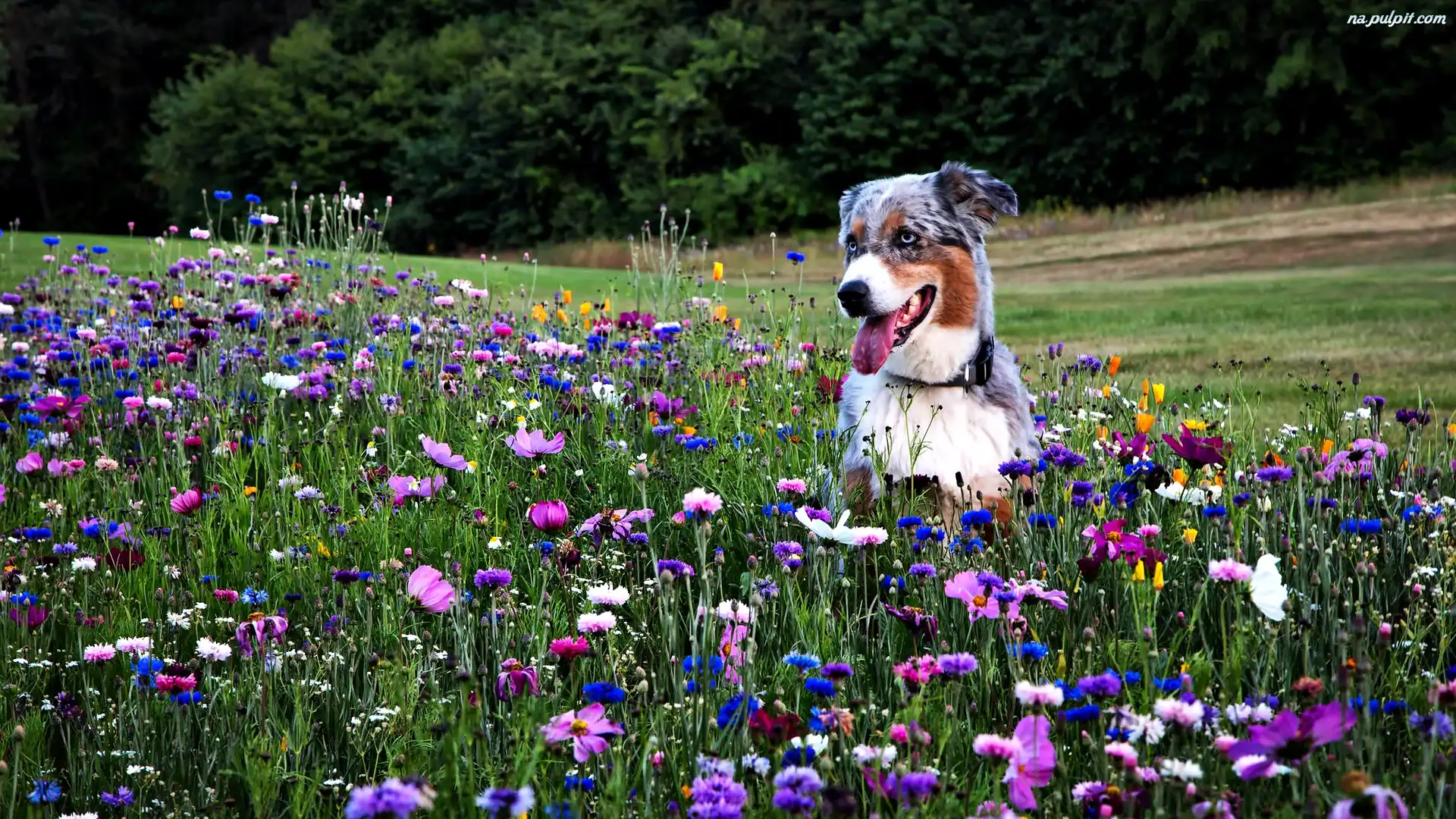 Łąka, Owczarek australijski-australian shepherd Na Pulpit