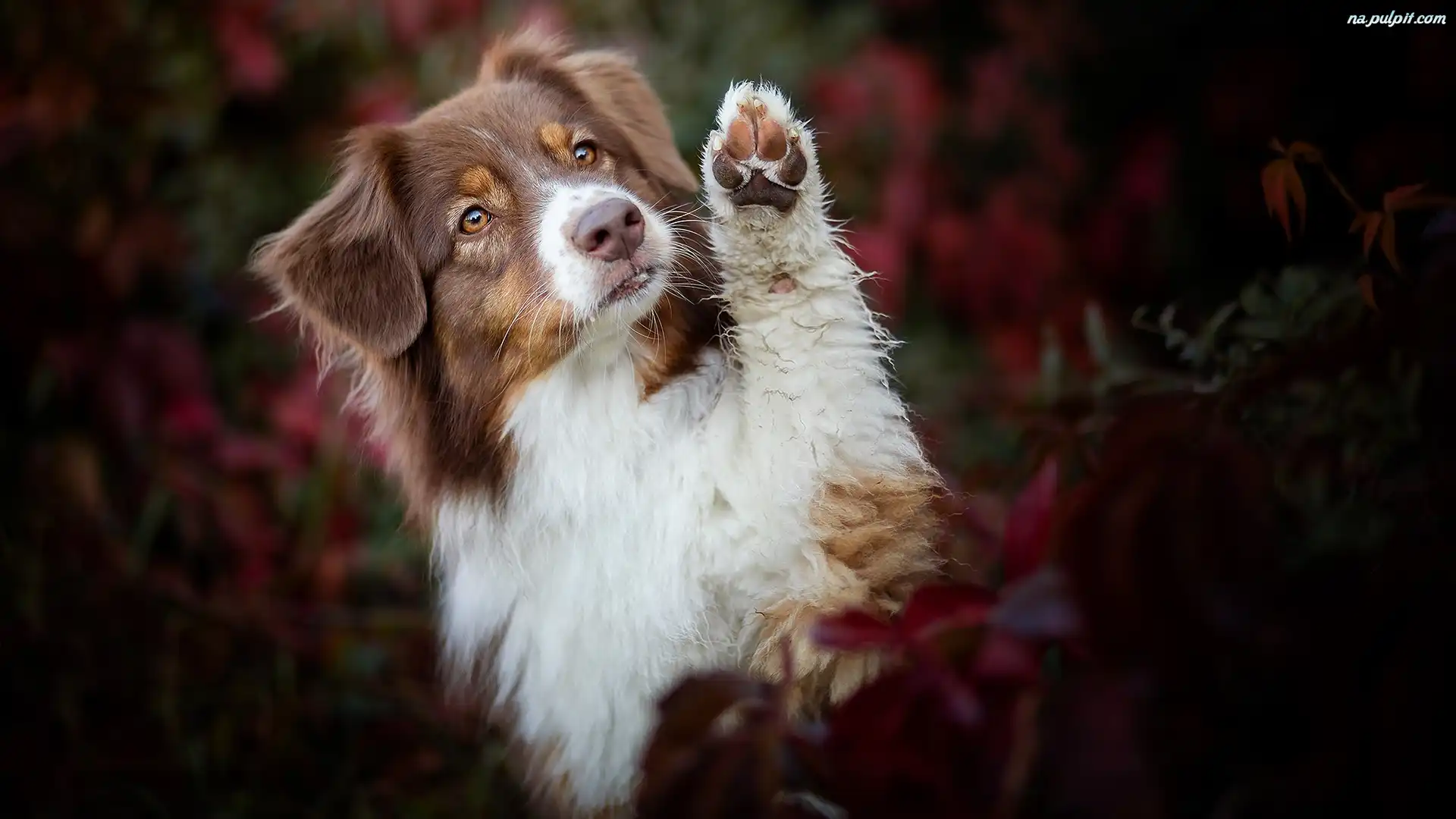 Owczarek australijski, Uniesiona, Łapka, Brązowo-biały, Pies, Mordka Na Pulpit