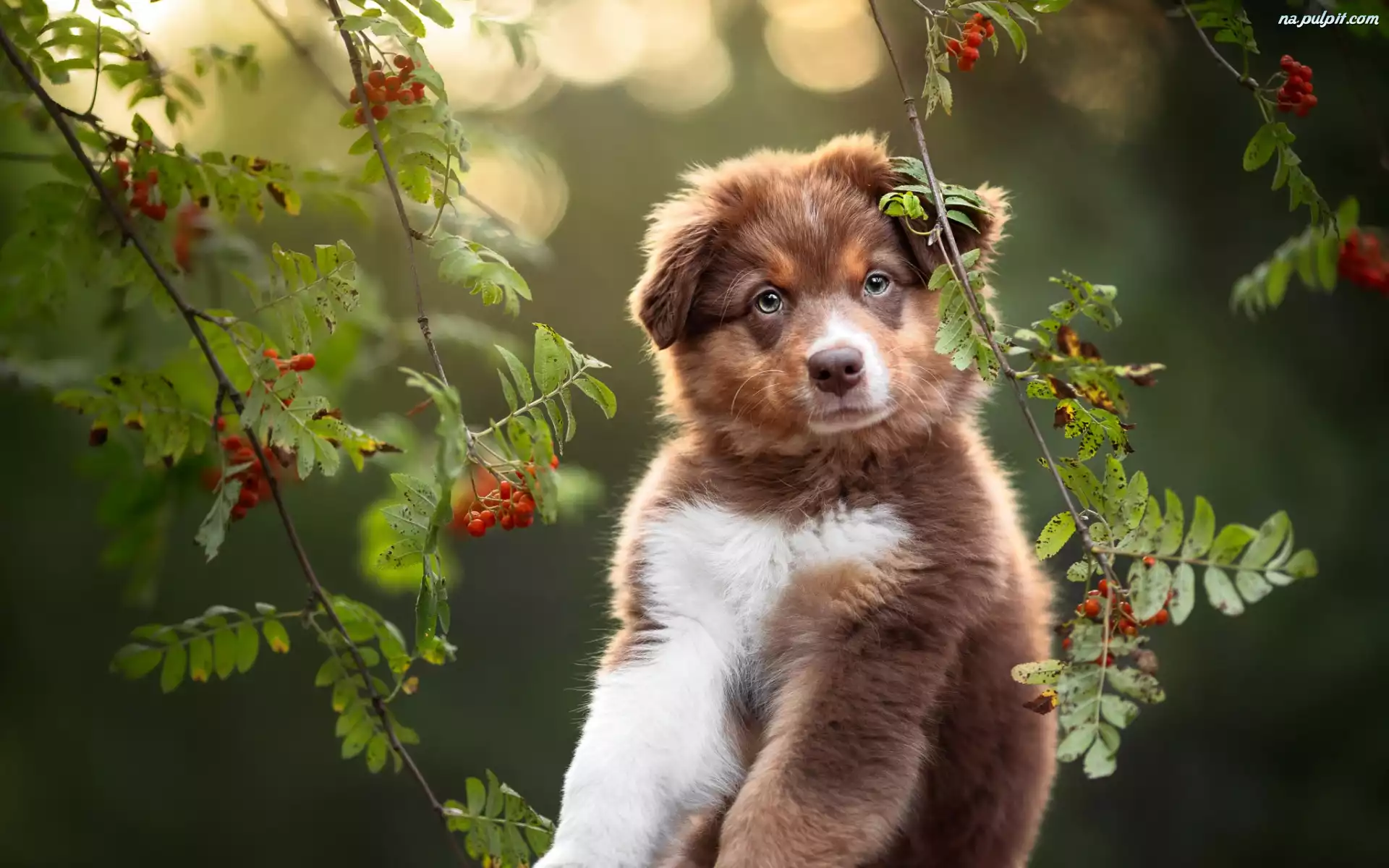 Jarzębina, Pies, Owczarek australijski, Gałązki, Szczeniak, Listki Na Pulpit