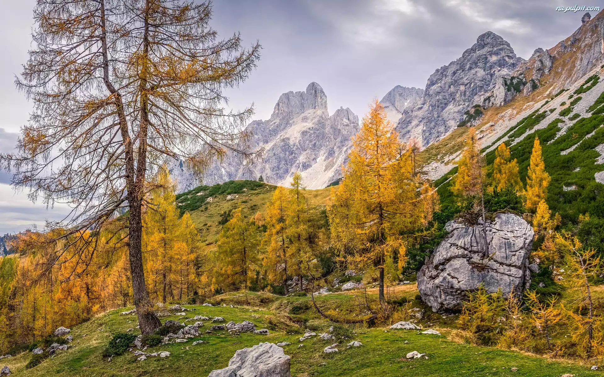 Kamienie, Drzewa, Alpy, Austria, Salzburg, Góry, Jesień Na Pulpit