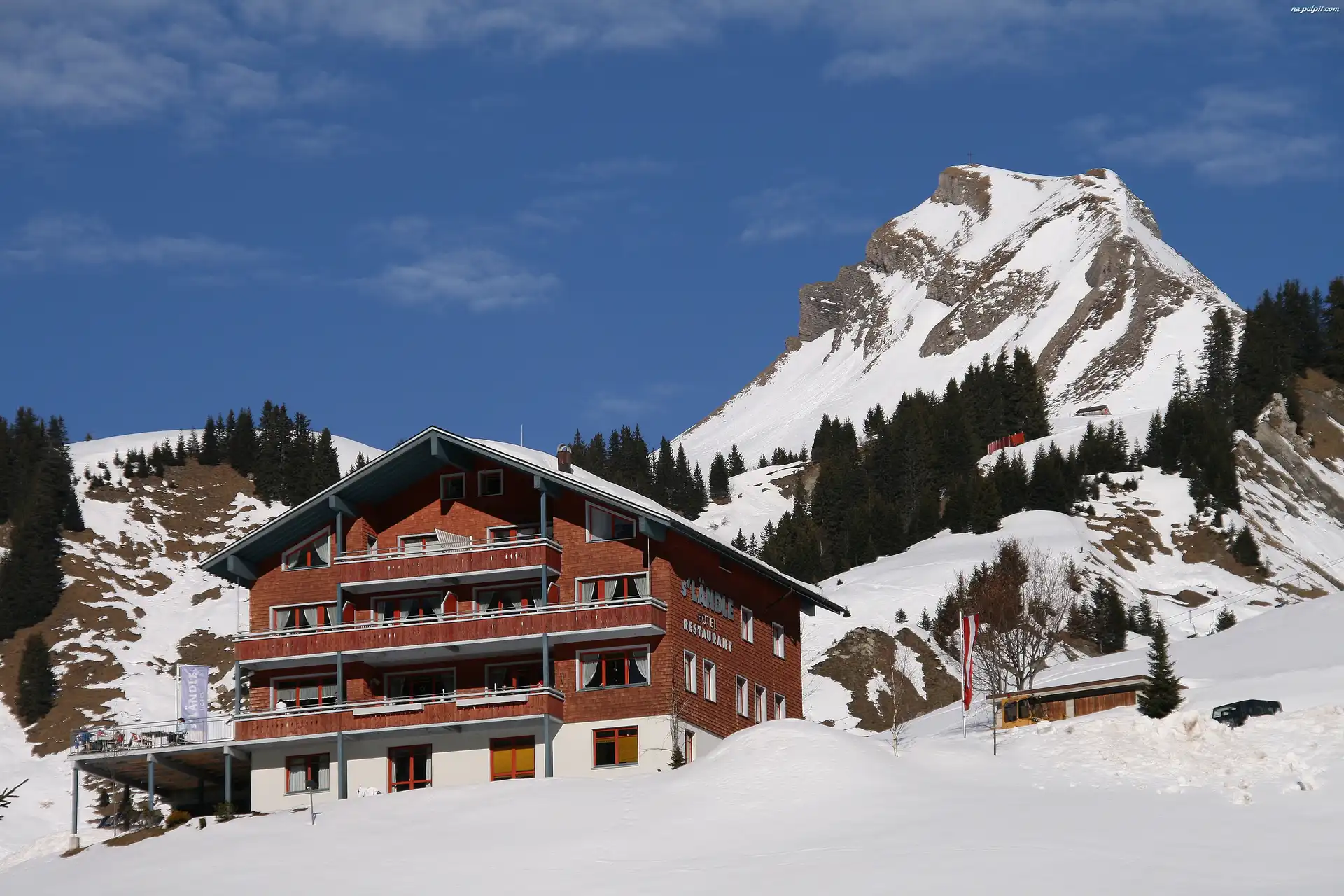 Austria, Pensjonat, Śnieg, Zima, Damuls, Góry Na Pulpit
