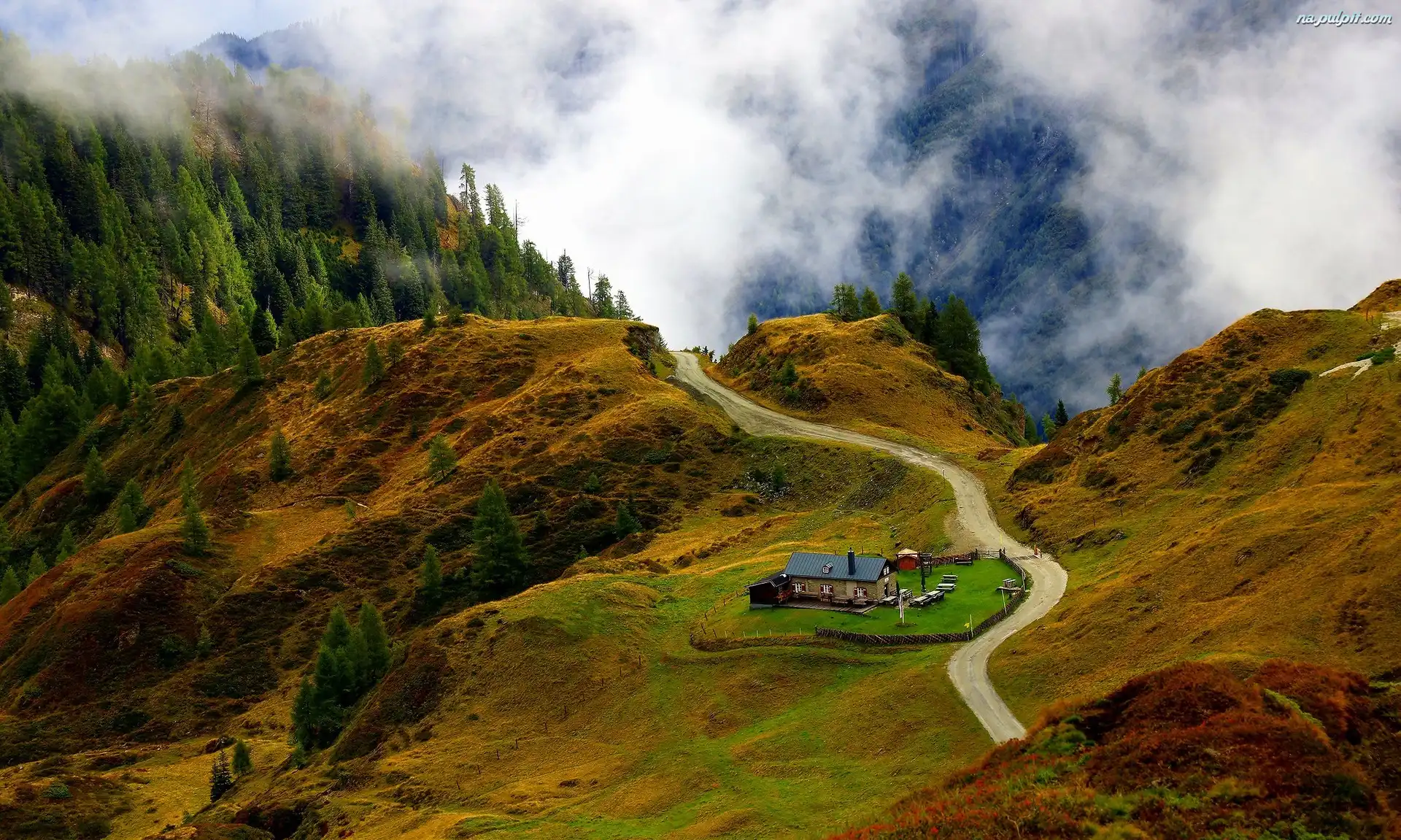 Austria, Chmury, Droga, Góry, Wysokie Taury, Dom, Gmina Kaprun Na Pulpit