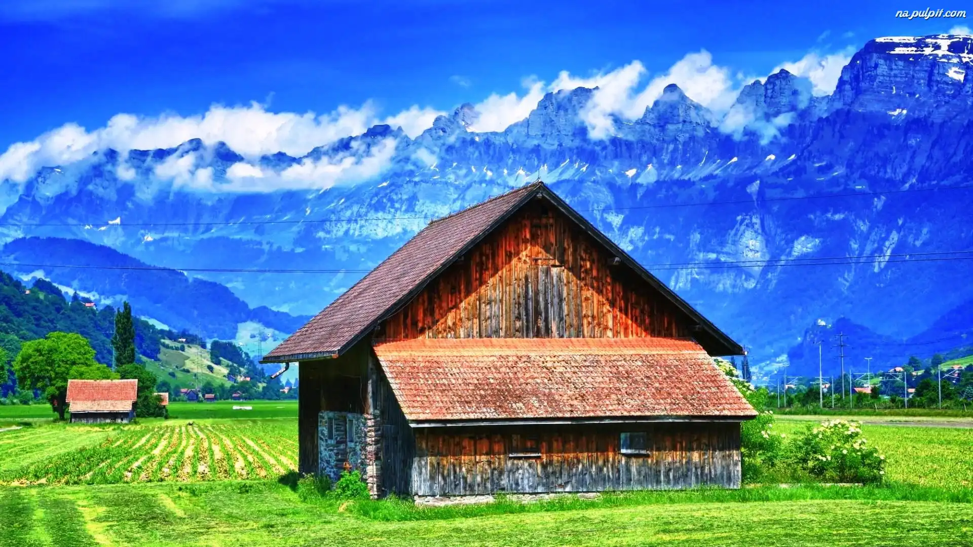 Austria, Góry, Pola, Domy, Alpy Na Pulpit