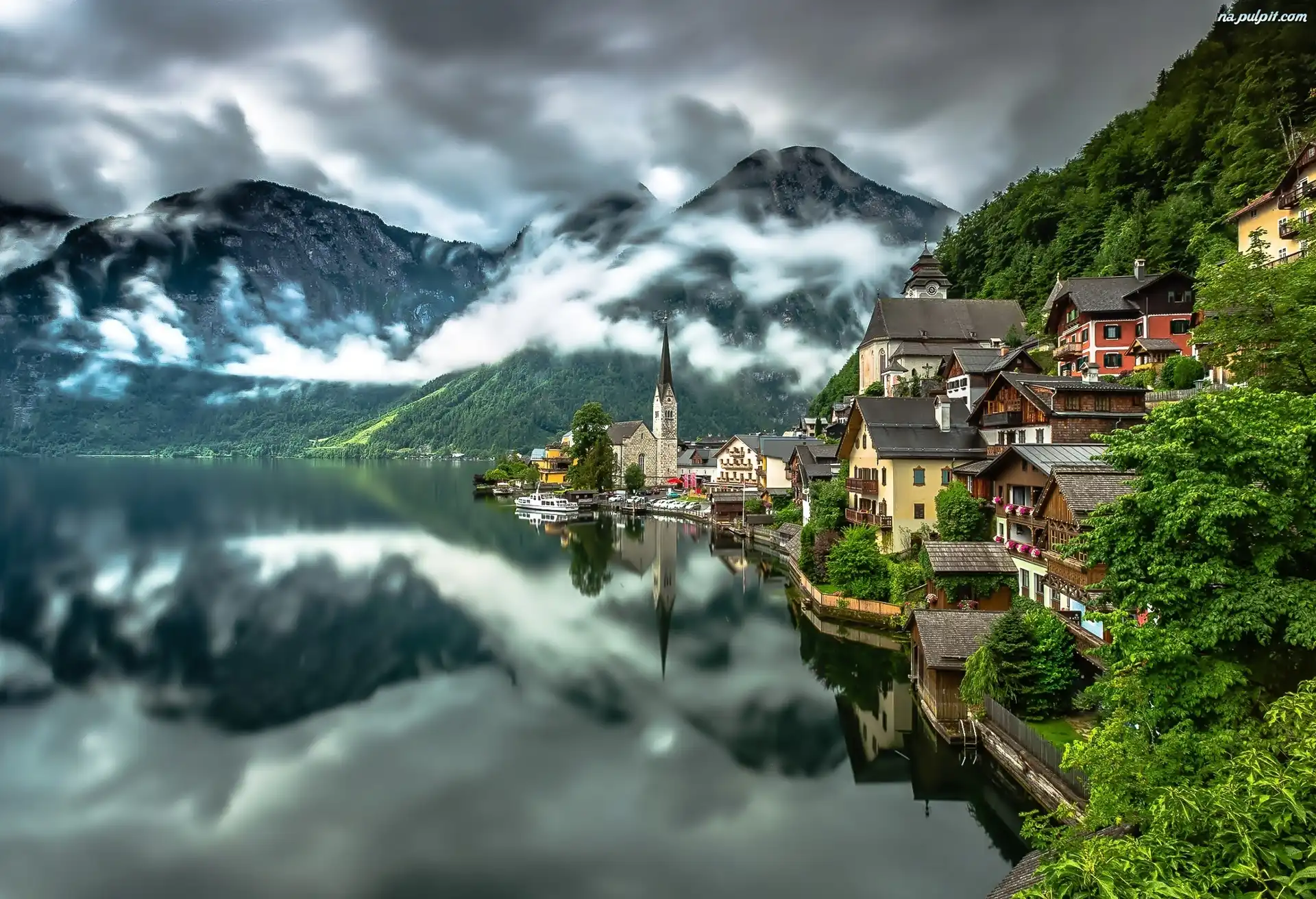 Austria, jezioro, Góry, Hallstatt Na Pulpit