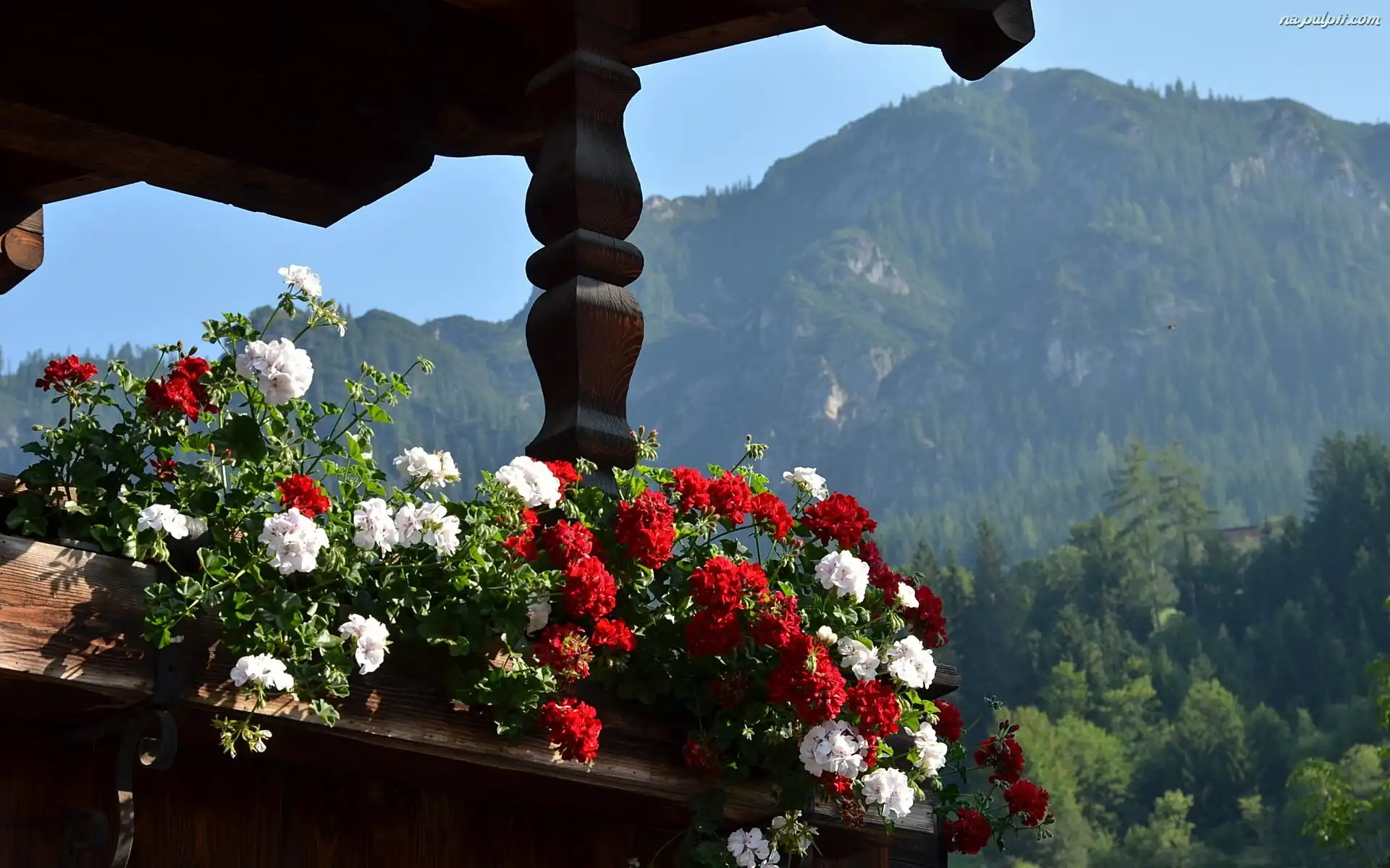 Austria, Taras, Pelargonie, Góry Alpy Na Pulpit