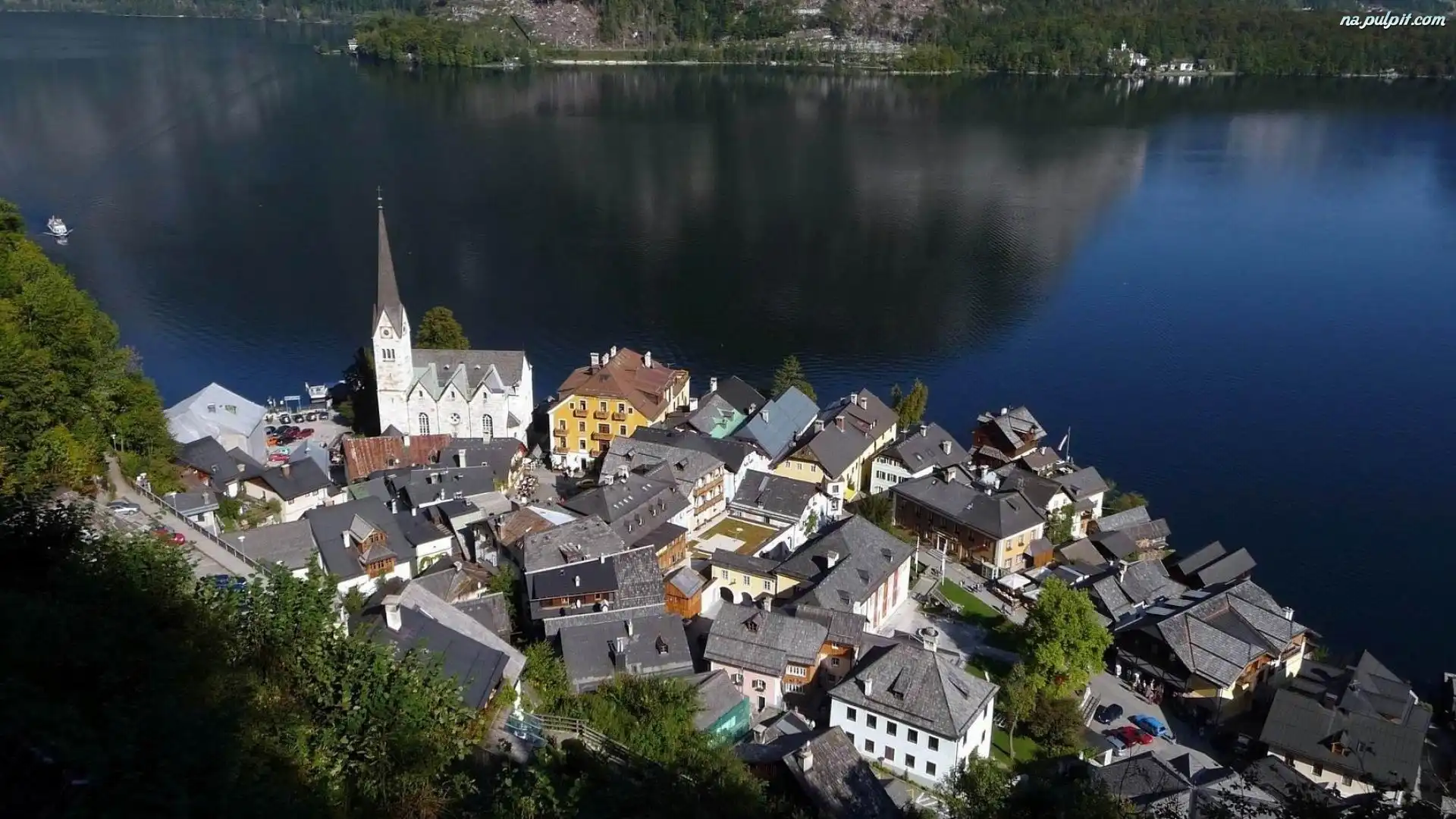 Austria, Domy, Jezioro, Hallstatt Na Pulpit
