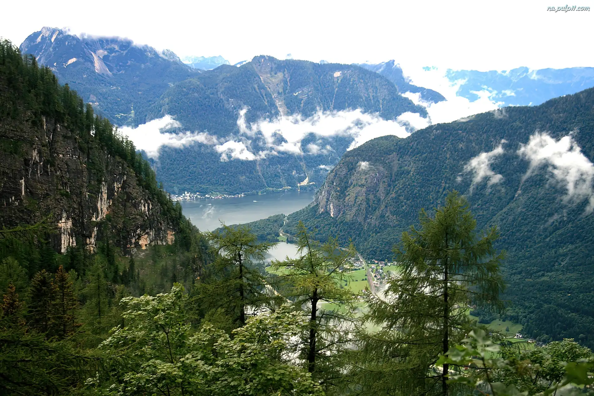 Austria, Drzewa, Góry, Jezioro, Dachstein Na Pulpit