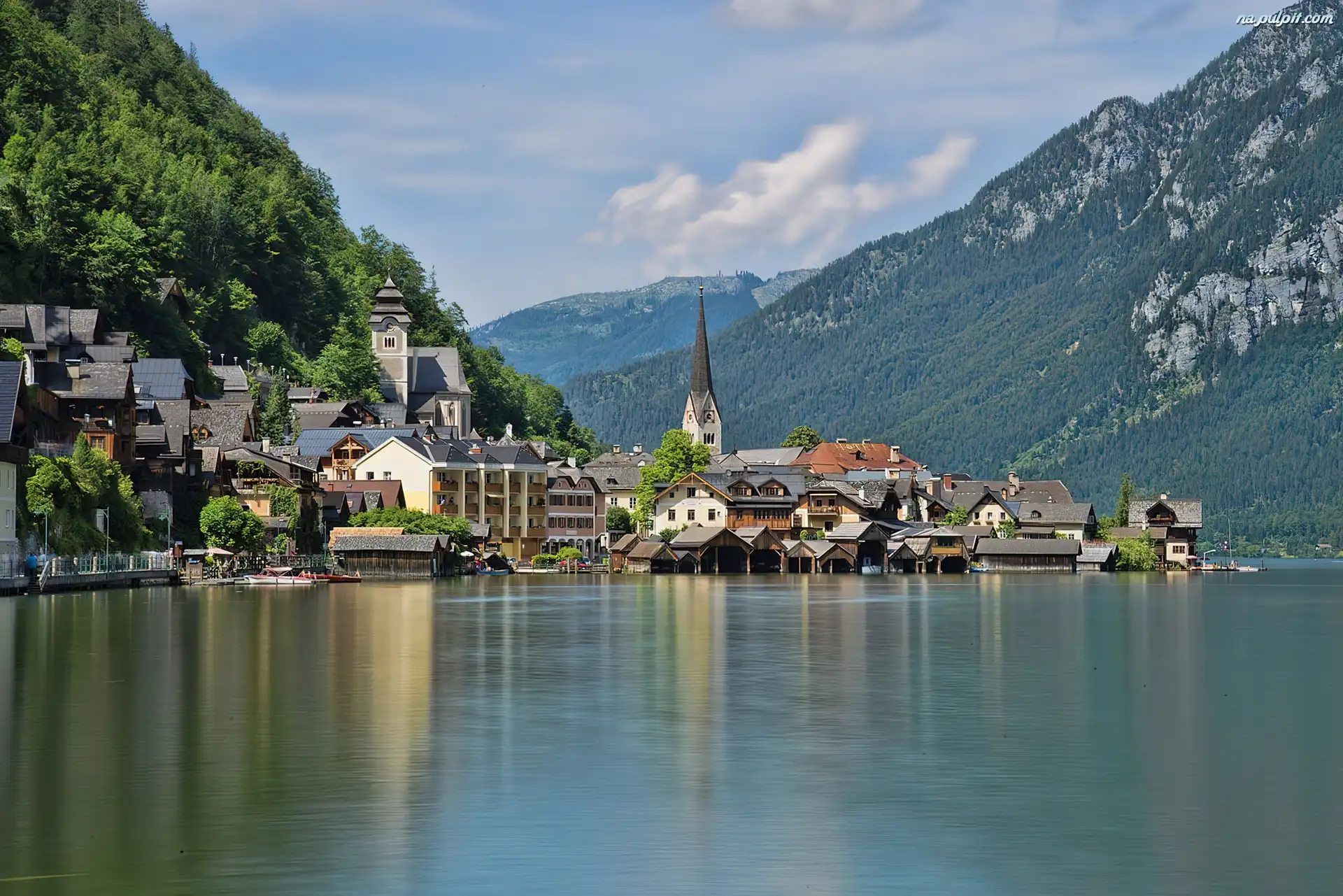 Austria, Zabudowanie, Góry, Jezioro, Hallstatt Na Pulpit