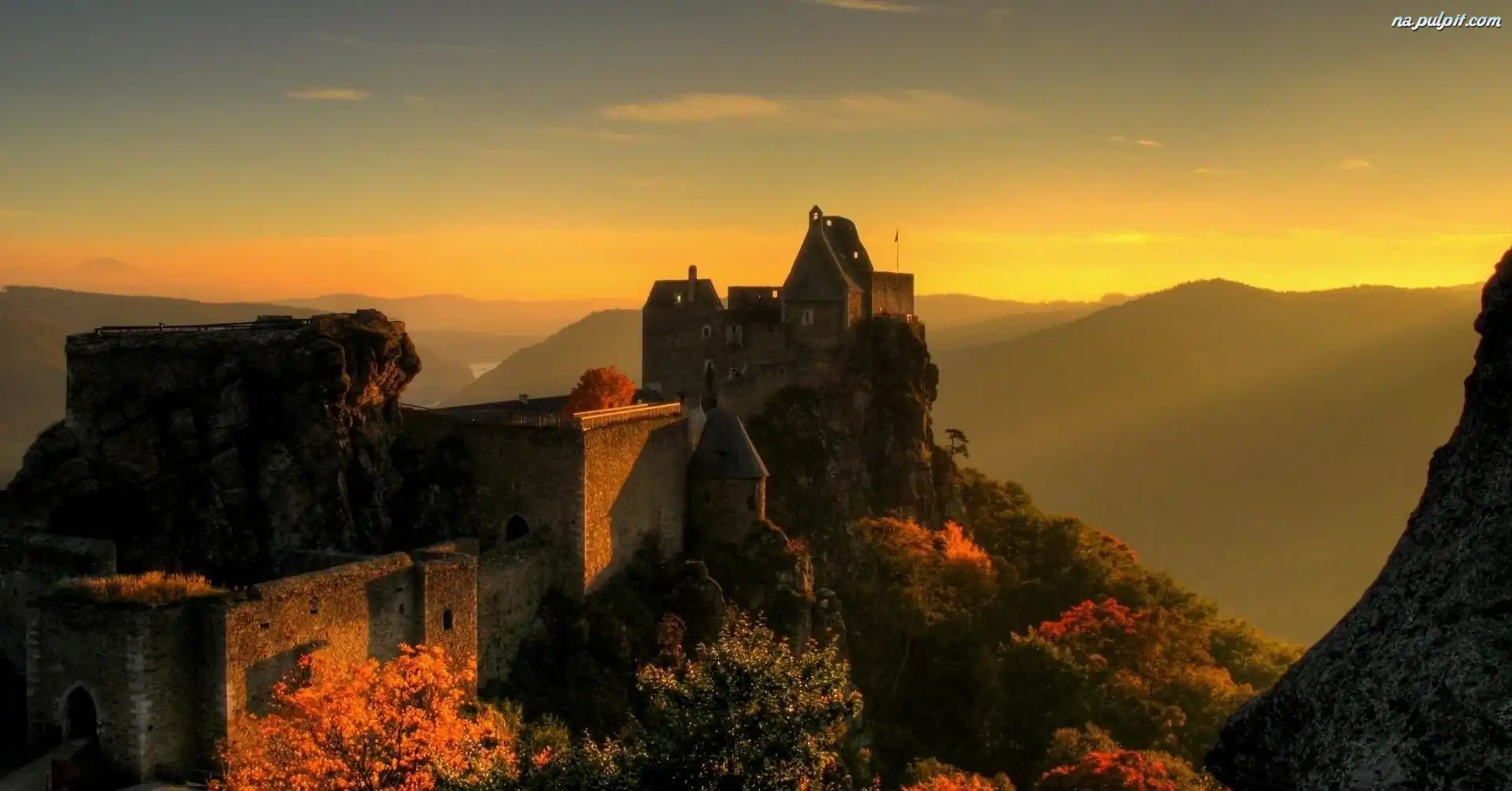 Austria, Góry, Zamek, Zachód Słońca Na Pulpit